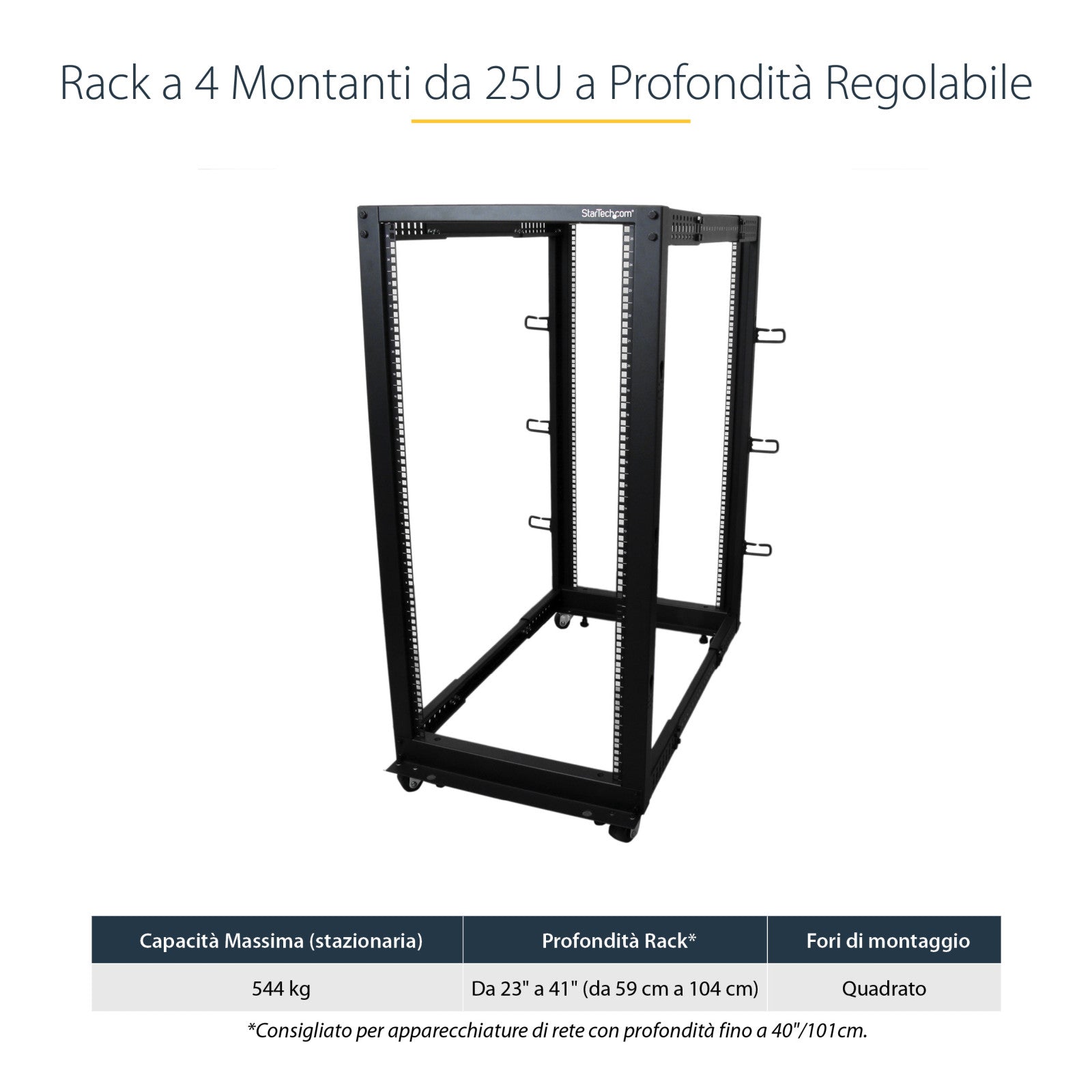 StarTech.com Rack Server 25U 4 Montanti Open Frame 19" con Ruote