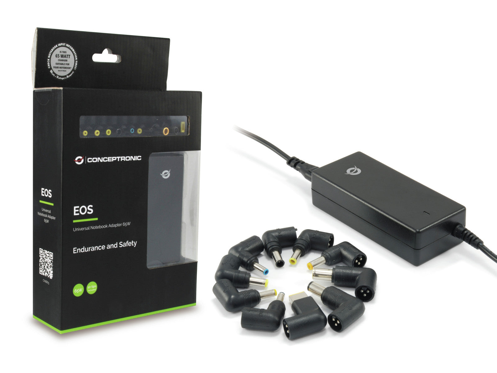 Adattatore universale Conceptronic CNB65 offre 65W di potenza per laptop. Compatibile con 12 connettori, versatile e sicuro. Design compatto per viaggi, doppia tensione e protezioni avanzate. La soluzione ideale per professionisti in movimento.