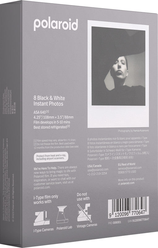 Polaroid i-Type 6001 Pellicola Istantanea Bianco e Nero ISO 640 8 Pezzi