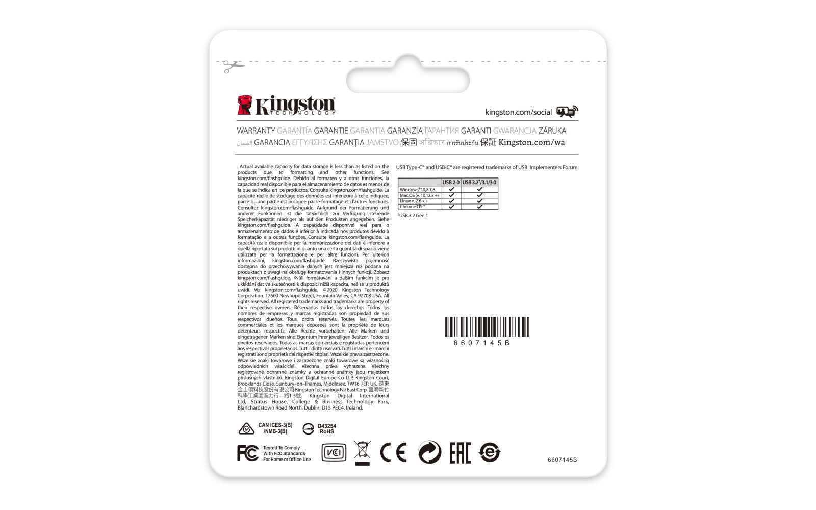 La Kingston DT70 è stata progettata pensando alla massima compatibilità. Funziona perfettamente con Windows 11/10/8.1, macOS (v. 10.15.x +), Linux (v. 4.4.x +) e Chrome OS, garantendo una flessibilità d'uso senza precedenti.