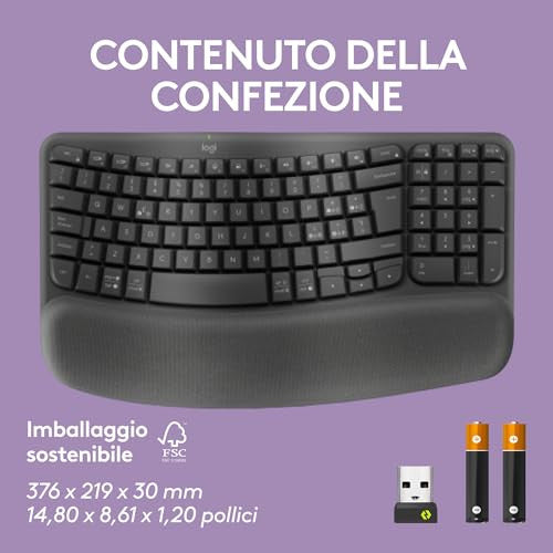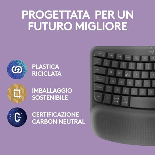 Logitech Wave Keys Tastiera Wireless Ergonomica Grafite con Supporto Polsi Imbottito