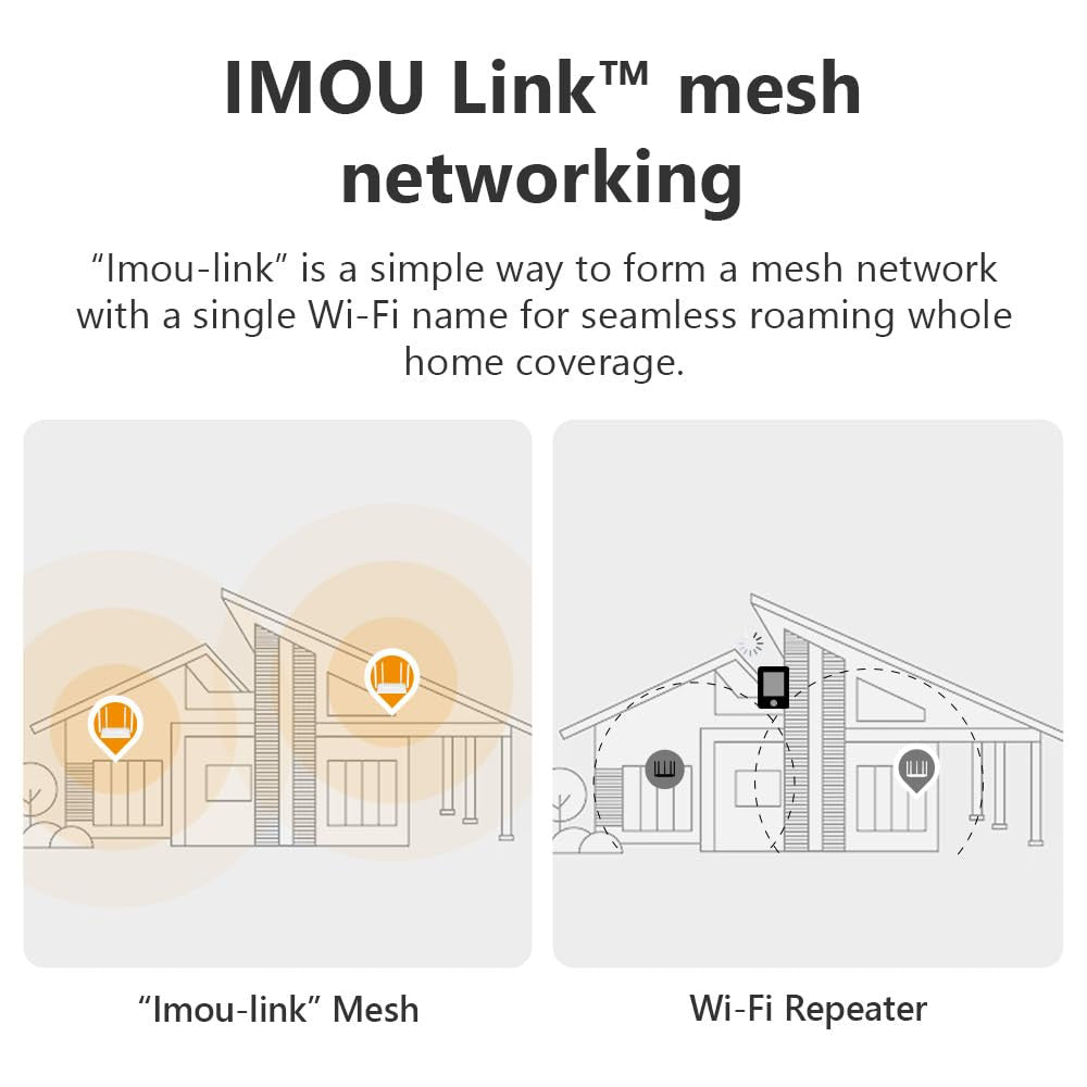 Il supporto per la tecnologia Mesh 'Imou-Link' consente di espandere facilmente la copertura Wi-Fi in tutta la casa, eliminando le zone morte e garantendo una connessione stabile ovunque ti trovi.