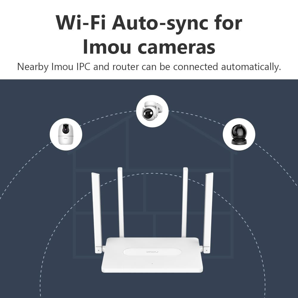 La configurazione del Router Wireless Imou è semplice e intuitiva grazie all'app Imoulife, che ti permette di gestire la tua rete anche da remoto. La tecnologia Imou Wi-Fi Auto-sync facilita la connessione con le telecamere Imou, creando un ecosistema smart perfettamente integrato.