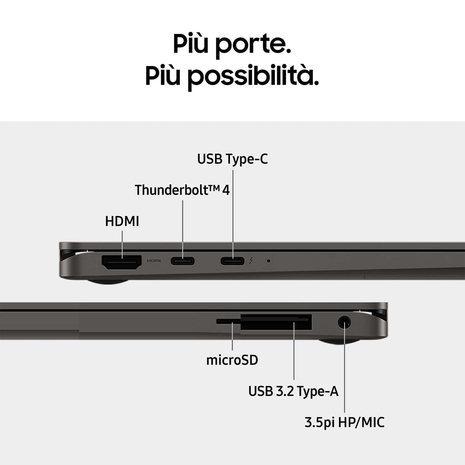 Per chi lavora in mobilità, la connettività è fondamentale. Il Samsung Galaxy Book3 360 non delude, offrendo Wi-Fi 6E per connessioni ultraveloci e una vasta gamma di porte, tra cui HDMI, USB-A, USB-C e Thunderbolt 4, per una flessibilità senza pari.