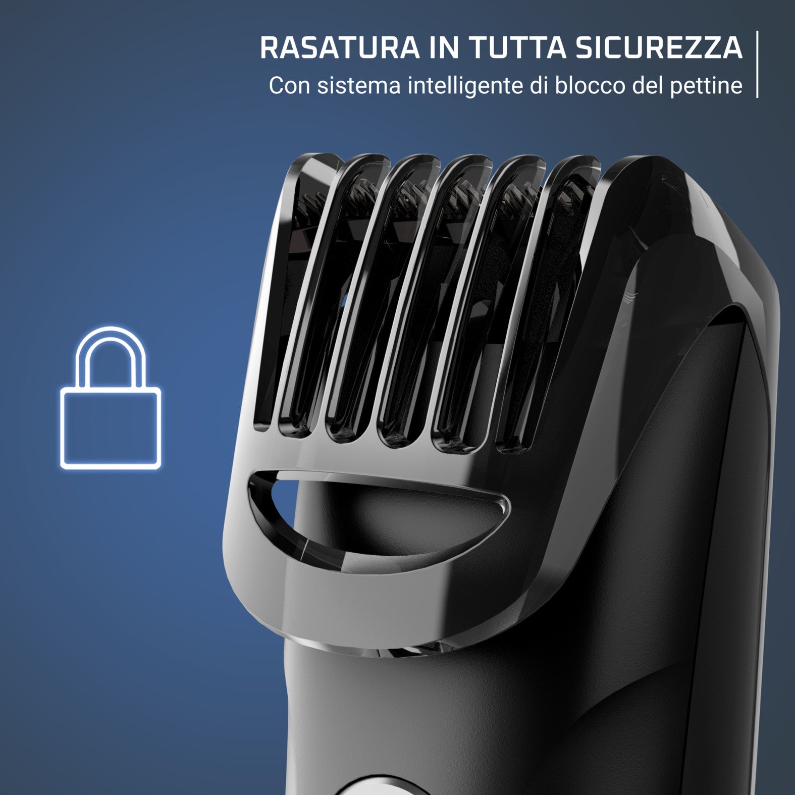 Il Rowenta Stylis TN2804E0 ti offre fino a 90 minuti di autonomia, per avere tutto il tempo di curare la tua barba senza interruzioni. E grazie al sistema di bloccaggio intelligente, non dovrai preoccuparti di cambiare accidentalmente la lunghezza di taglio.