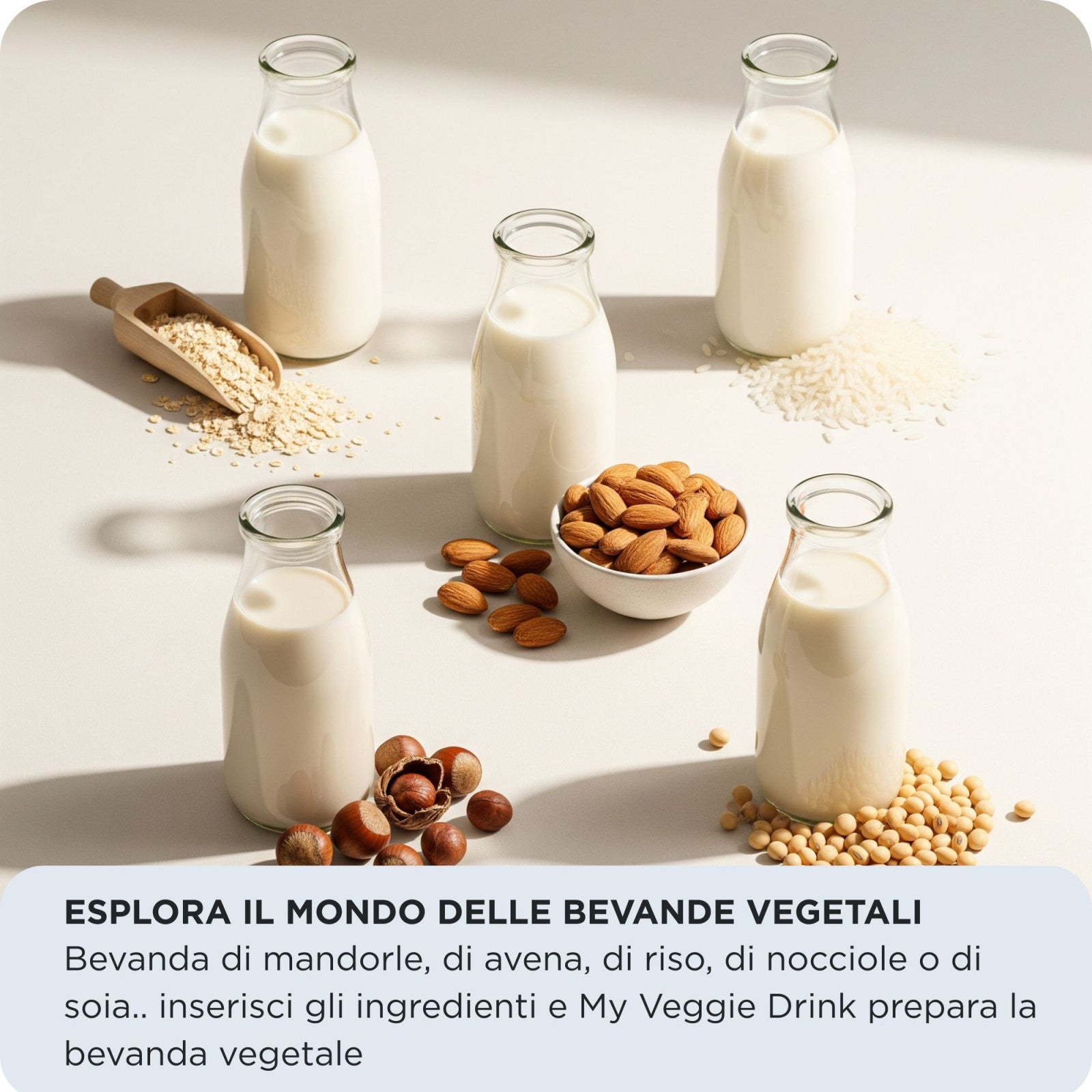 My Veggie Drink è ideale per chi segue una dieta vegana, vegetariana o semplicemente desidera ridurre il consumo di latticini. È perfetta per preparare bevande per la colazione, merenda o per accompagnare i tuoi pasti. Grazie al suo design compatto e alla sua facilità d'uso, si adatta perfettamente a qualsiasi cucina.