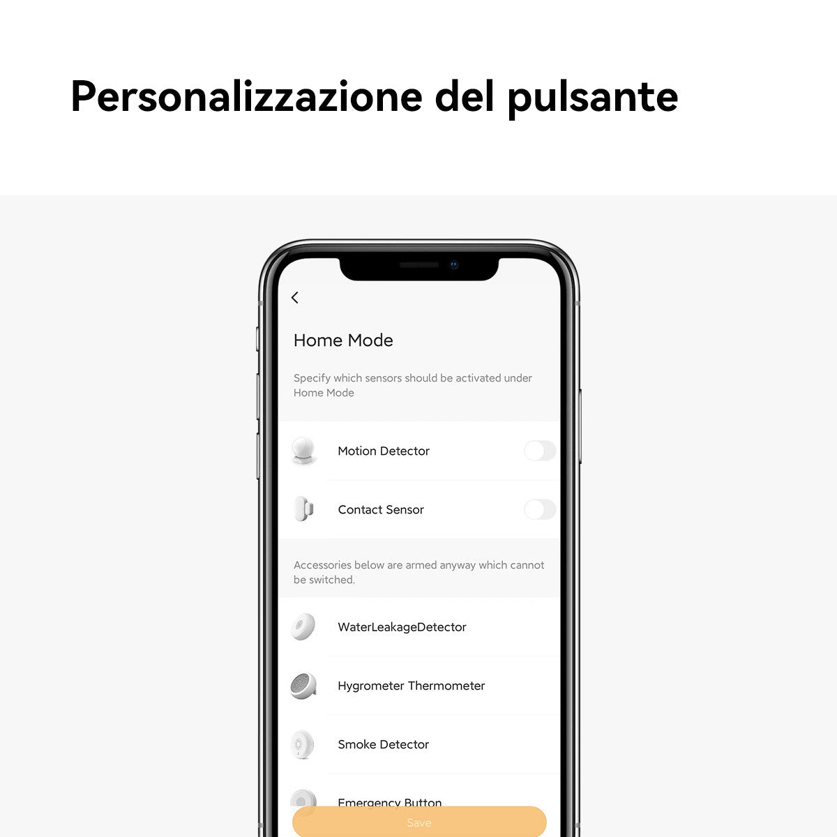 Il bottone SMART programmabile aggiunge un ulteriore livello di personalizzazione, permettendoti di attivare scenari predefiniti o inviare avvisi con un semplice tocco.