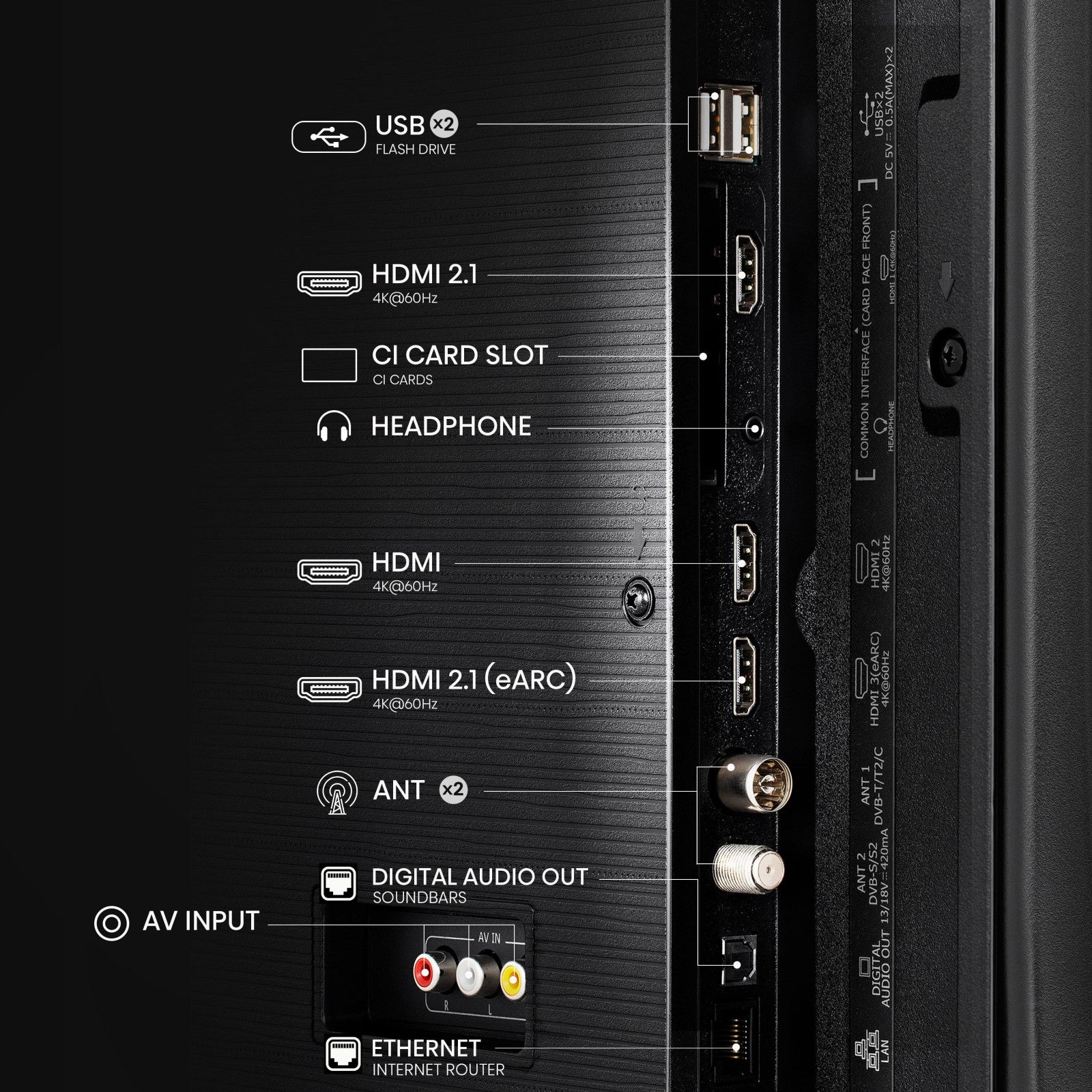 - Connettività avanzata: Wi-Fi integrato e diverse porte HDMI e USB per collegare tutti i tuoi dispositivi.
