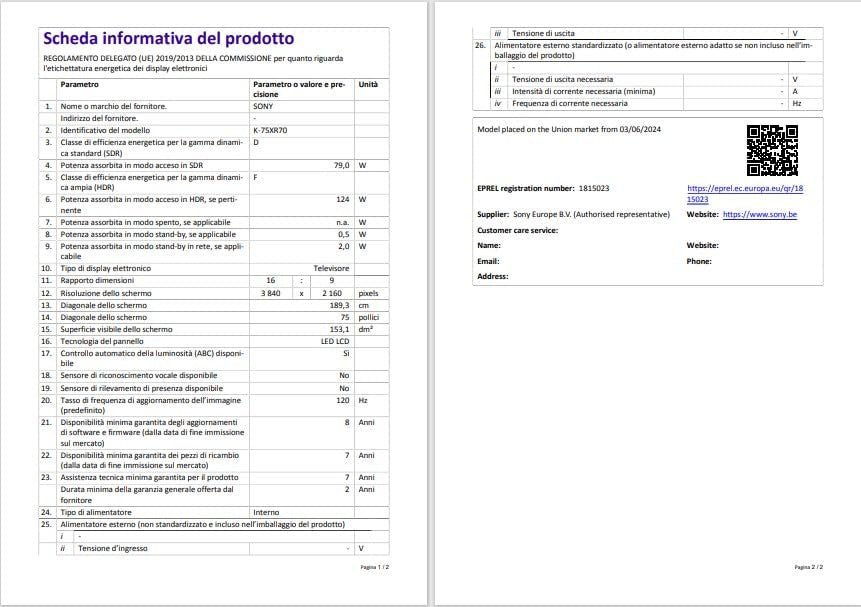 Sony BRAVIA 75XR70 Smart TV QLED 75" 4K HDR Google TV Nero