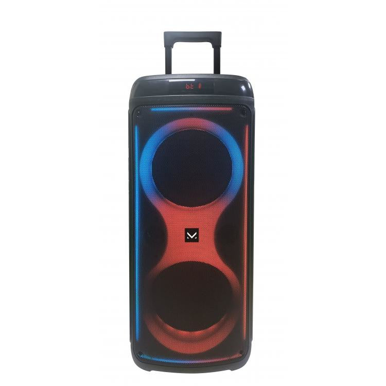 Il FLAME T88 si distingue per le sue luci LED multicolori che creano un'atmosfera vibrante con 7 effetti diversi, perfetti per animare qualsiasi ambiente. La potenza audio è garantita da due woofer da 8" e un tweeter da 1,5", che assicurano bassi profondi e alti cristallini.