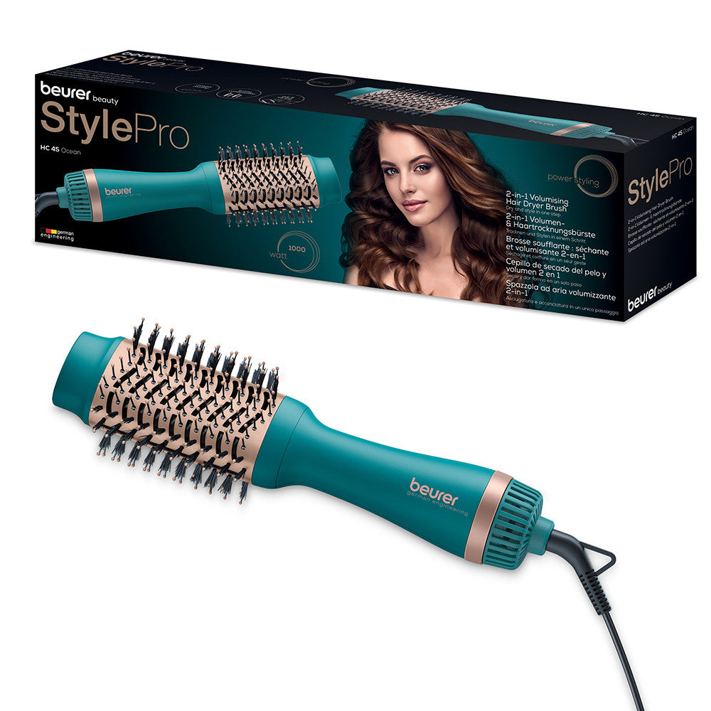 Beurer Hc 45 Ocean è la spazzola ad aria 2 in 1 che asciuga e volumizza. Con rivestimento in cheratina ceramica e 2 livelli di temperatura, per uno styling professionale e delicato.