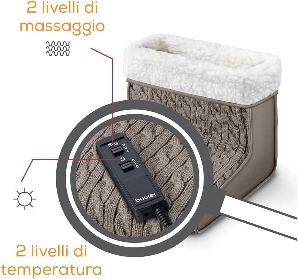 The **Beurer FWM 45** offers **adjustable heat** and dual intensity **massage**. **Plush** design and automatic switch-off. Perfect for relaxation and well-being.