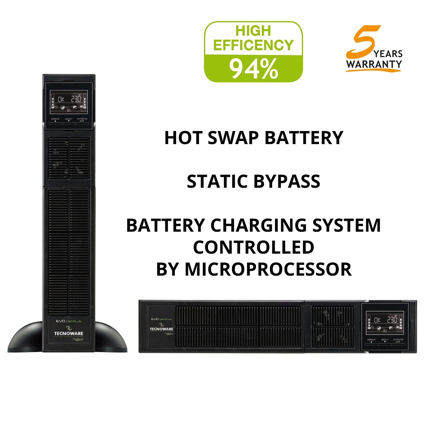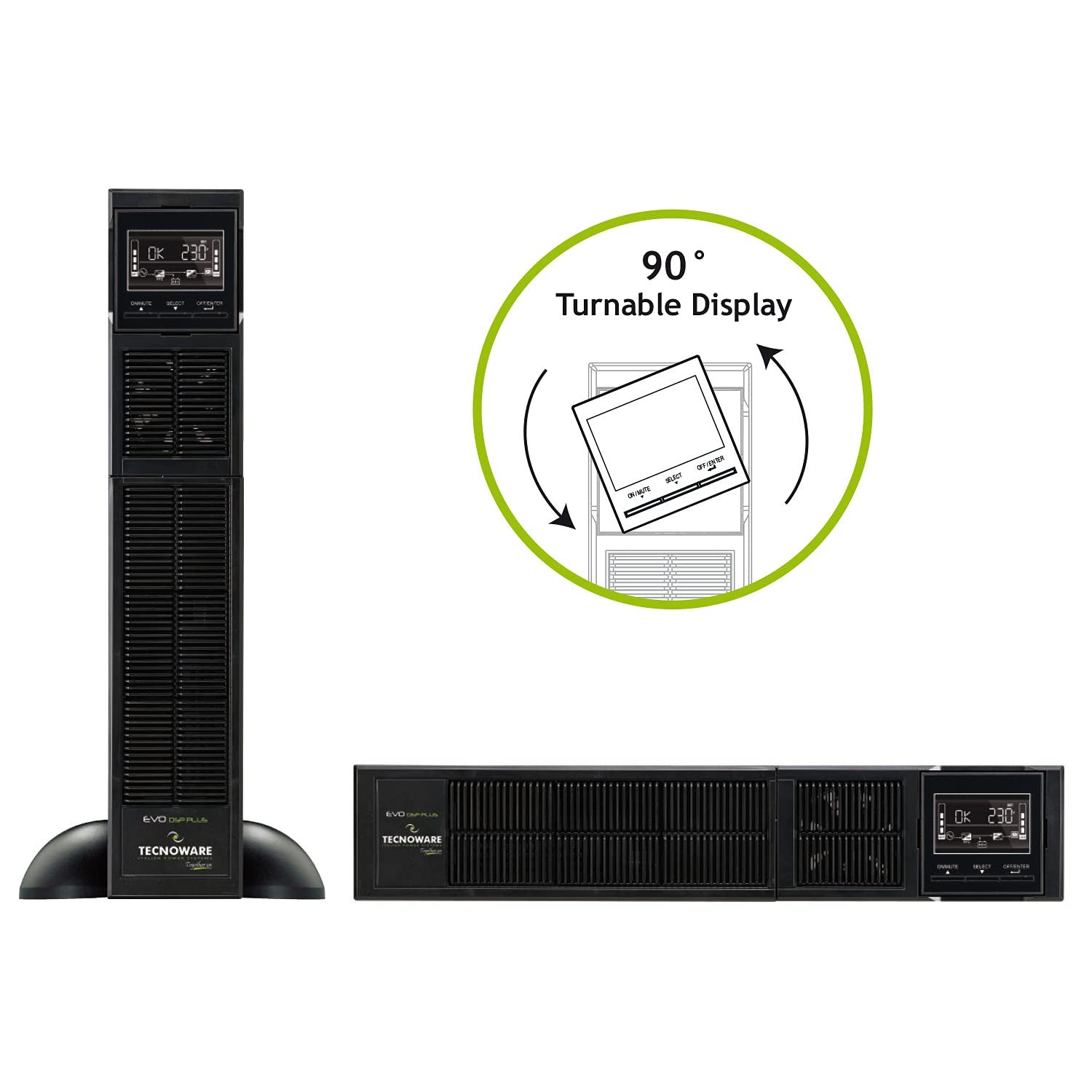 Il Tecnoware EVO DSP PLUS 2400 si adatta perfettamente a qualsiasi ambiente, grazie al suo elegante design nero e alle dimensioni compatte. La sua versatilità lo rende ideale sia per uffici moderni che per data center di piccole e medie dimensioni.