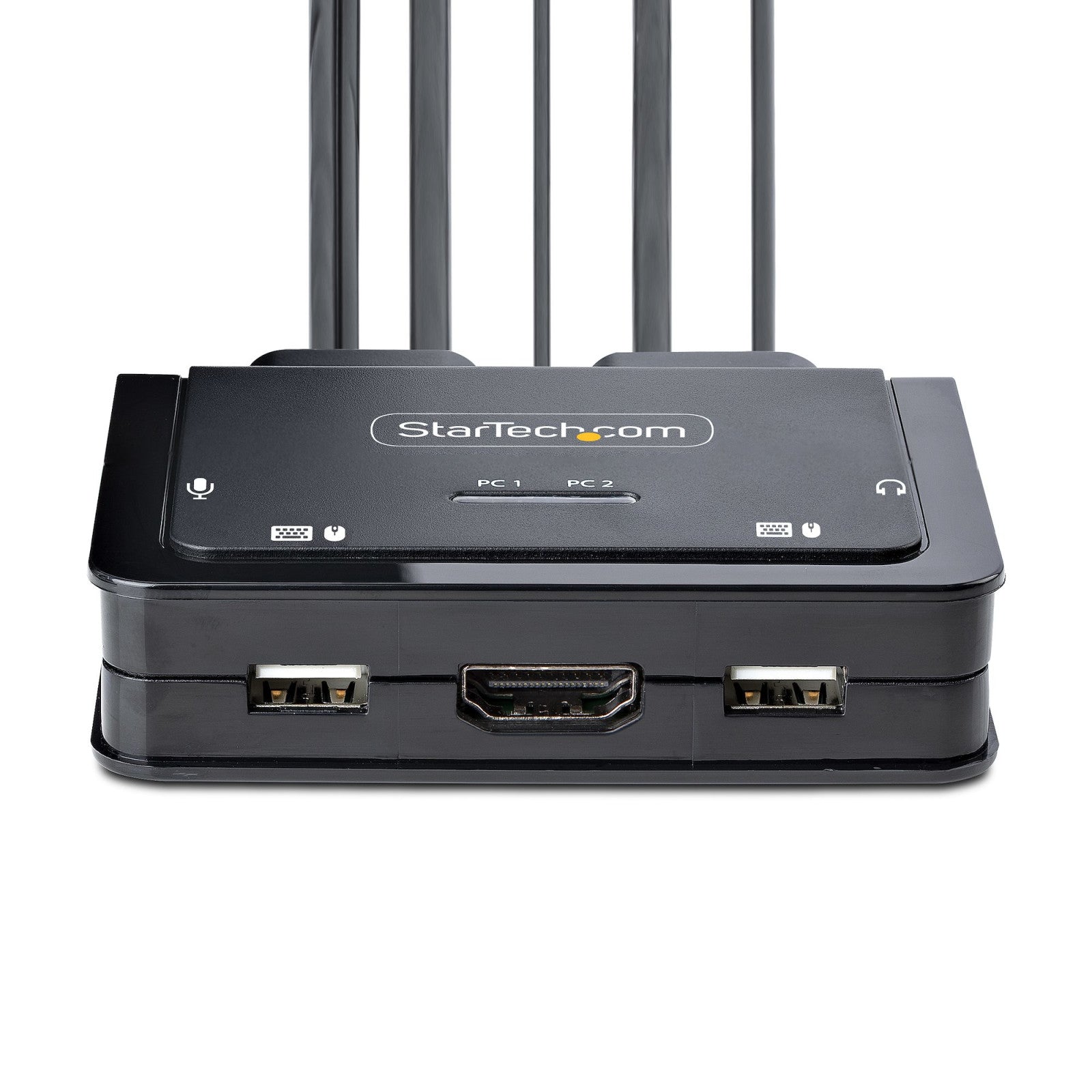 Lo Switch KVM StarTech.com condivide mouse, tastiera e display HDMI 4K tra computer USB-A e USB-C. Con cavi integrati e supporto multi-OS, ottimizza la tua postazione di lavoro.
