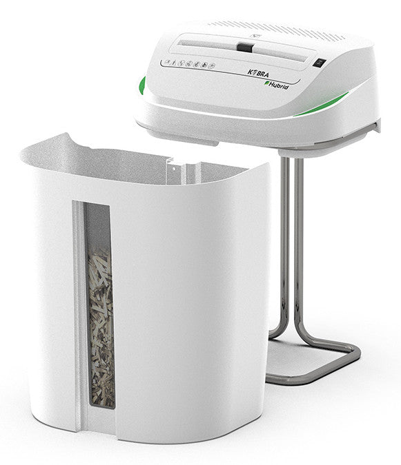 Il KOBRA C4-HYBRID è un distruggidocumenti innovativo con tecnologia ibrida per risparmio energetico. Distrugge fino a 17 fogli, CD e carte di credito. Design moderno, funzionamento continuo e contenitore da 40L per massima efficienza.