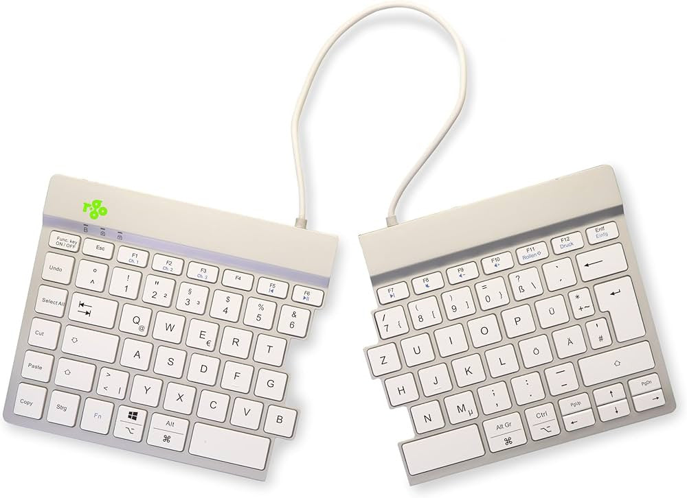 Il colore bianco della tastiera R-Go Split non solo è esteticamente gradevole, ma contribuisce anche a creare un ambiente di lavoro luminoso e positivo. La sua eleganza si adatta perfettamente a qualsiasi setup, dal minimalista al più sofisticato.