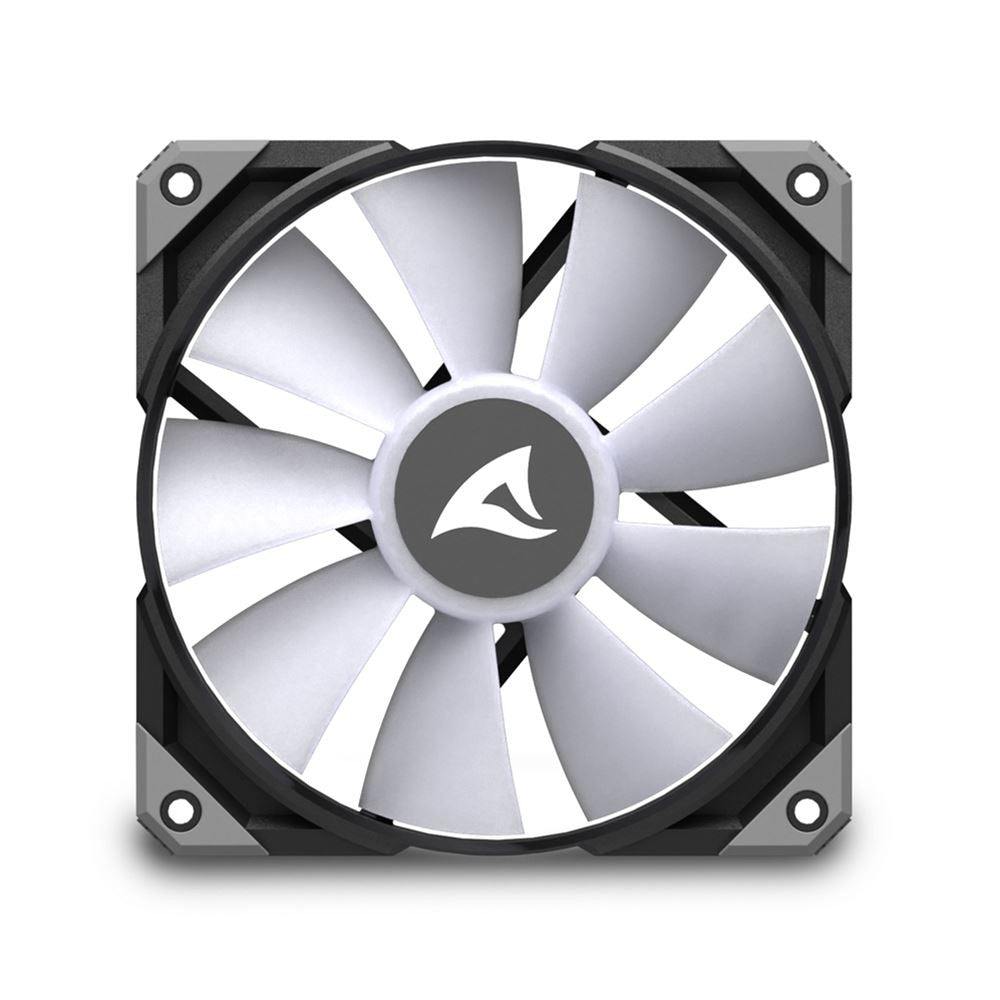 Il cuore pulsante dello Sharkoon S70 è il suo radiatore da 240mm, dotato di due ventole RGB da 12cm che non solo illuminano il tuo setup con 16,7 milioni di colori, ma garantiscono anche un flusso d'aria ottimale fino a 131,93 m³/h. La velocità regolabile da 600 a 2000 giri/min assicura il perfetto equilibrio tra performance e silenziosità.