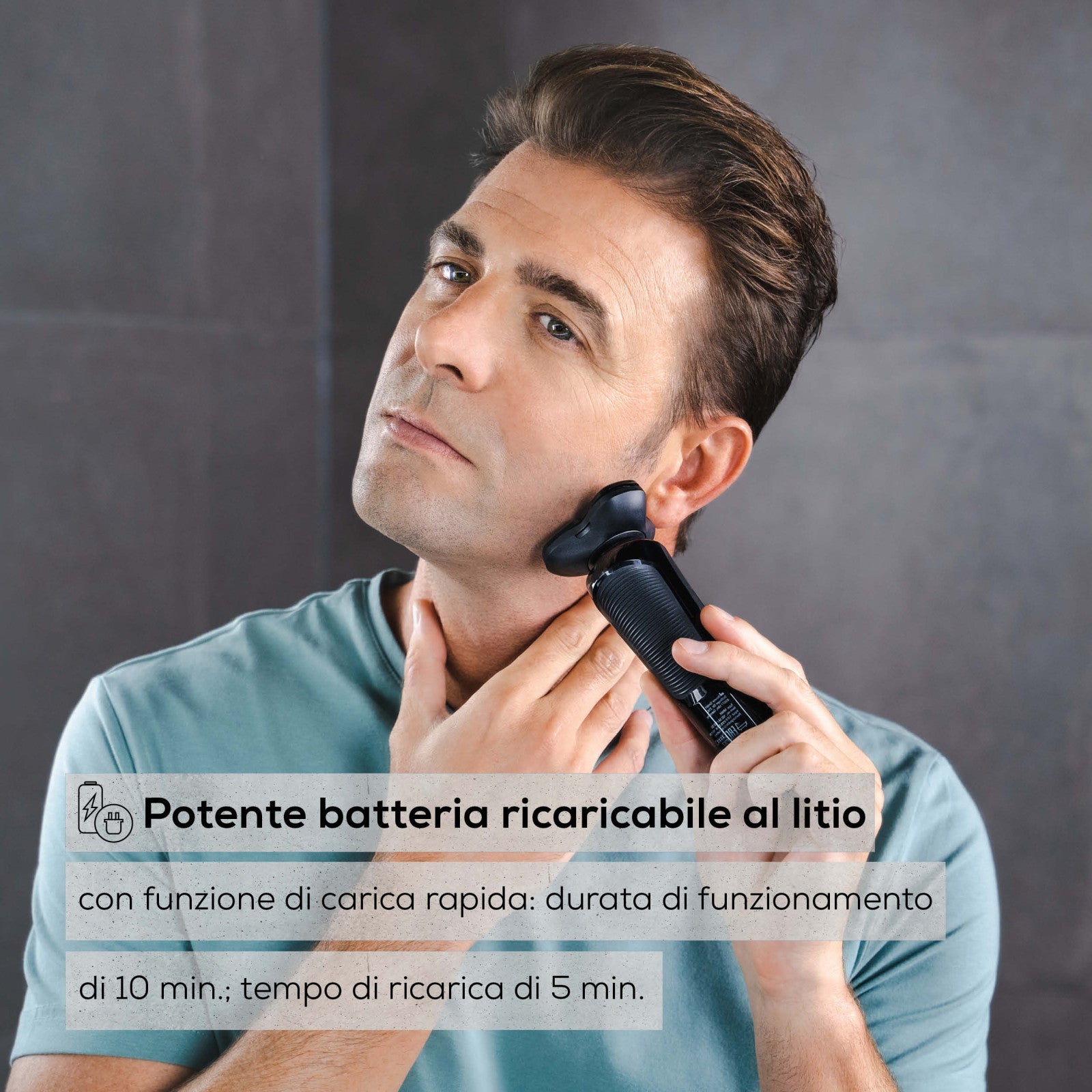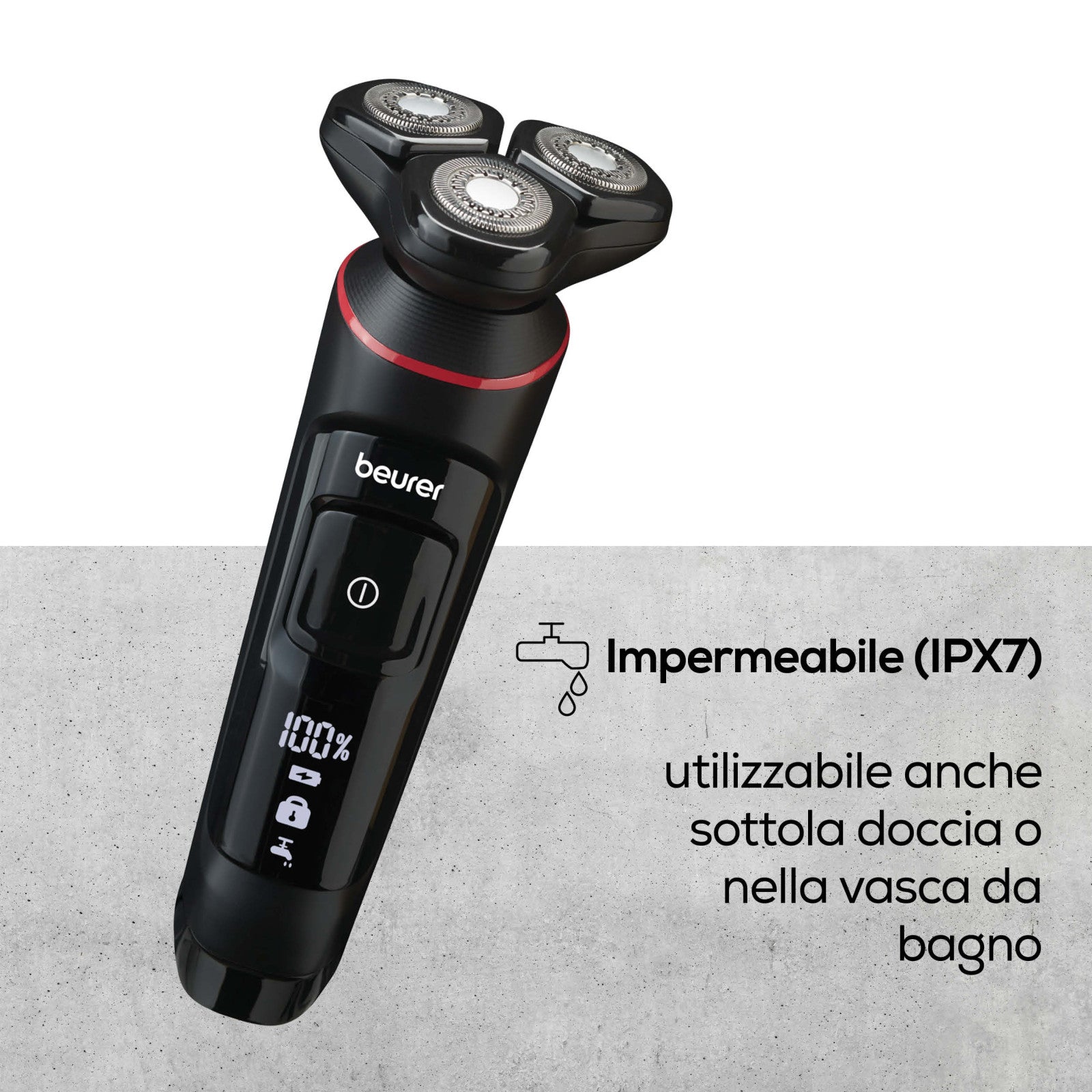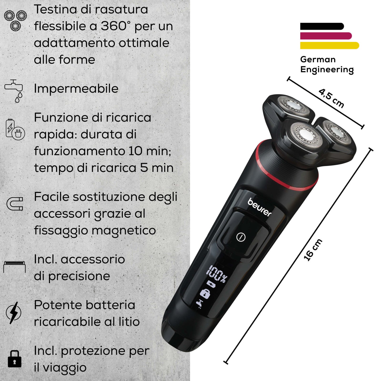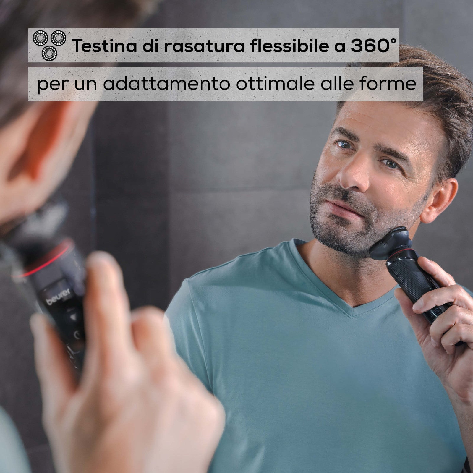 Beurer MN8X Rasoio Rotante Nero 3 Testine Flessibili Batteria Ricaricabile