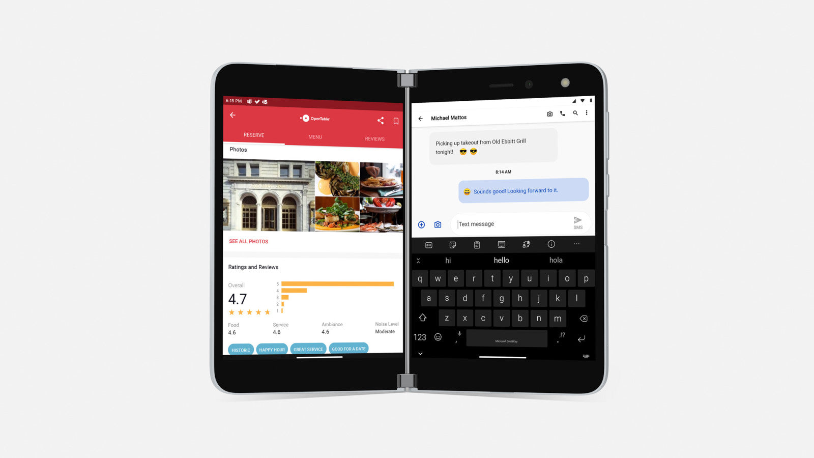 Il Surface Duo vanta un design rivoluzionario con doppio schermo AMOLED da 5,6 pollici ciascuno, che si apre come un libro per offrire un'esperienza visiva immersiva di 8,1 pollici. Questa configurazione unica permette il multitasking senza precedenti, ideale per chi cerca efficienza e versatilità.