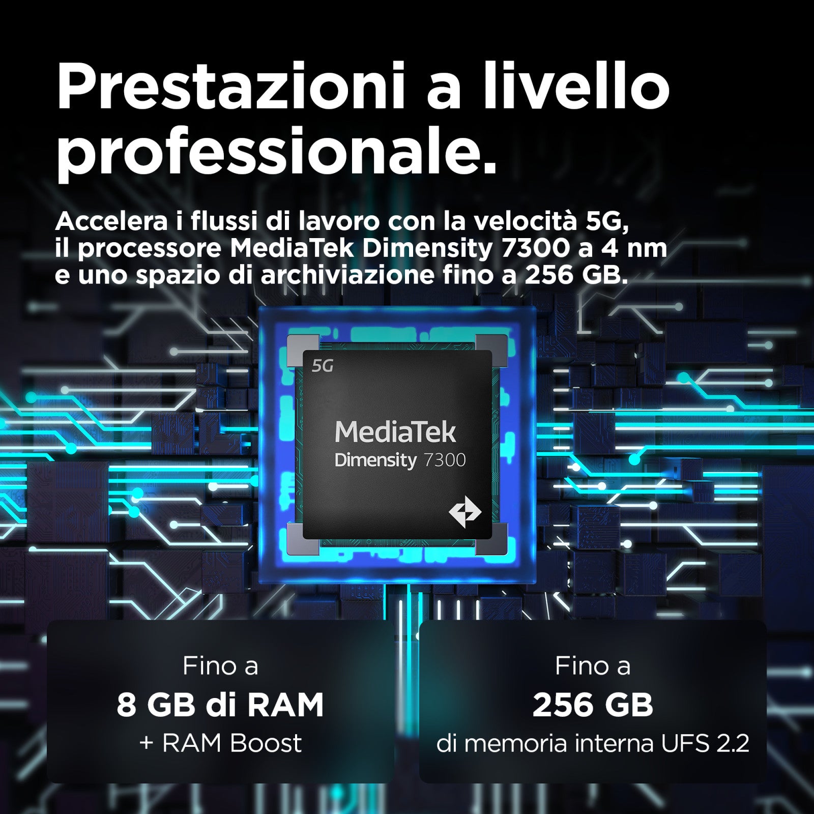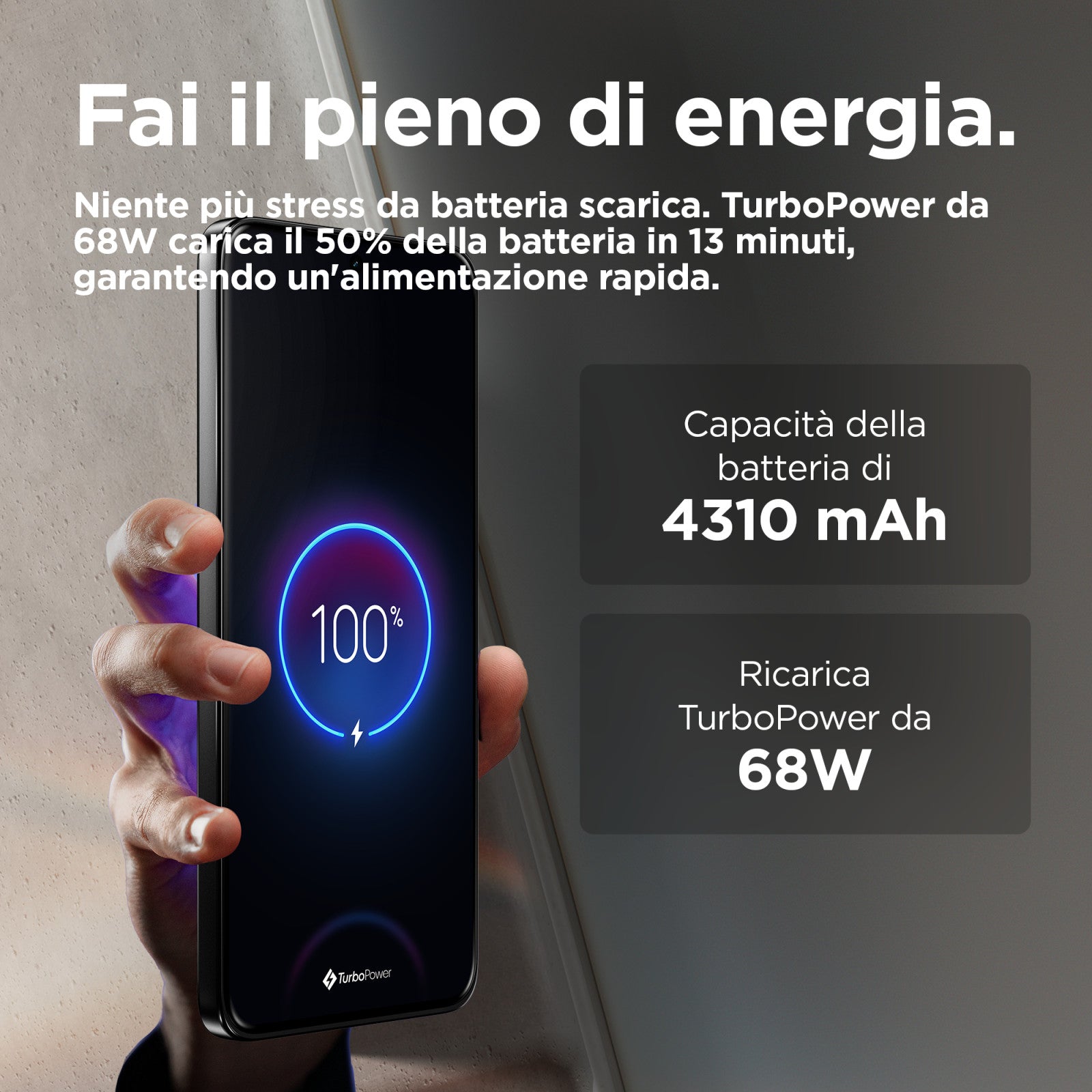 Dotato di 256GB di memoria interna e 8GB di RAM, questo smartphone Motorola assicura spazio abbondante per tutte le tue applicazioni e file, mantenendo prestazioni fluide anche durante il multitasking più intenso. La connettività 5G ti permette di navigare, scaricare e condividere contenuti a velocità fulminee, mentre la batteria da 4310 mAh con ricarica rapida TurboPower ti garantisce autonomia per tutta la giornata lavorativa.