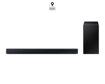 La Samsung Soundbar C430 offre un'esperienza audio immersiva con 2.1 canali e subwoofer wireless. Dotata di DTS Virtual:X, modalità gioco e Bluetooth per un suono potente e versatile.