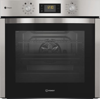 Indesit IFWS 5844 JH IX is a built-in electric oven in stainless steel. It offers 71 litres of capacity, 16 cooking programmes and steam function. Energy class A+ and touch display for professional results.