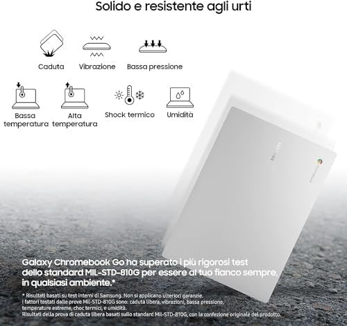 With 8GB of RAM and 64GB of SSD , the Galaxy Chromebook Go delivers unprecedented fluidity, perfect for intensive multitasking and demanding applications. The 14-inch display offers sharp images and vivid colors, ideal for long work or study sessions.