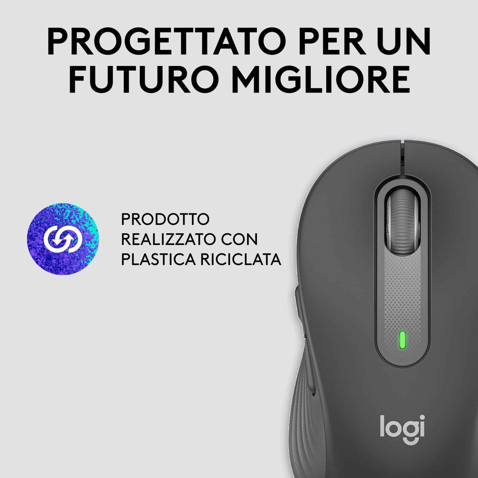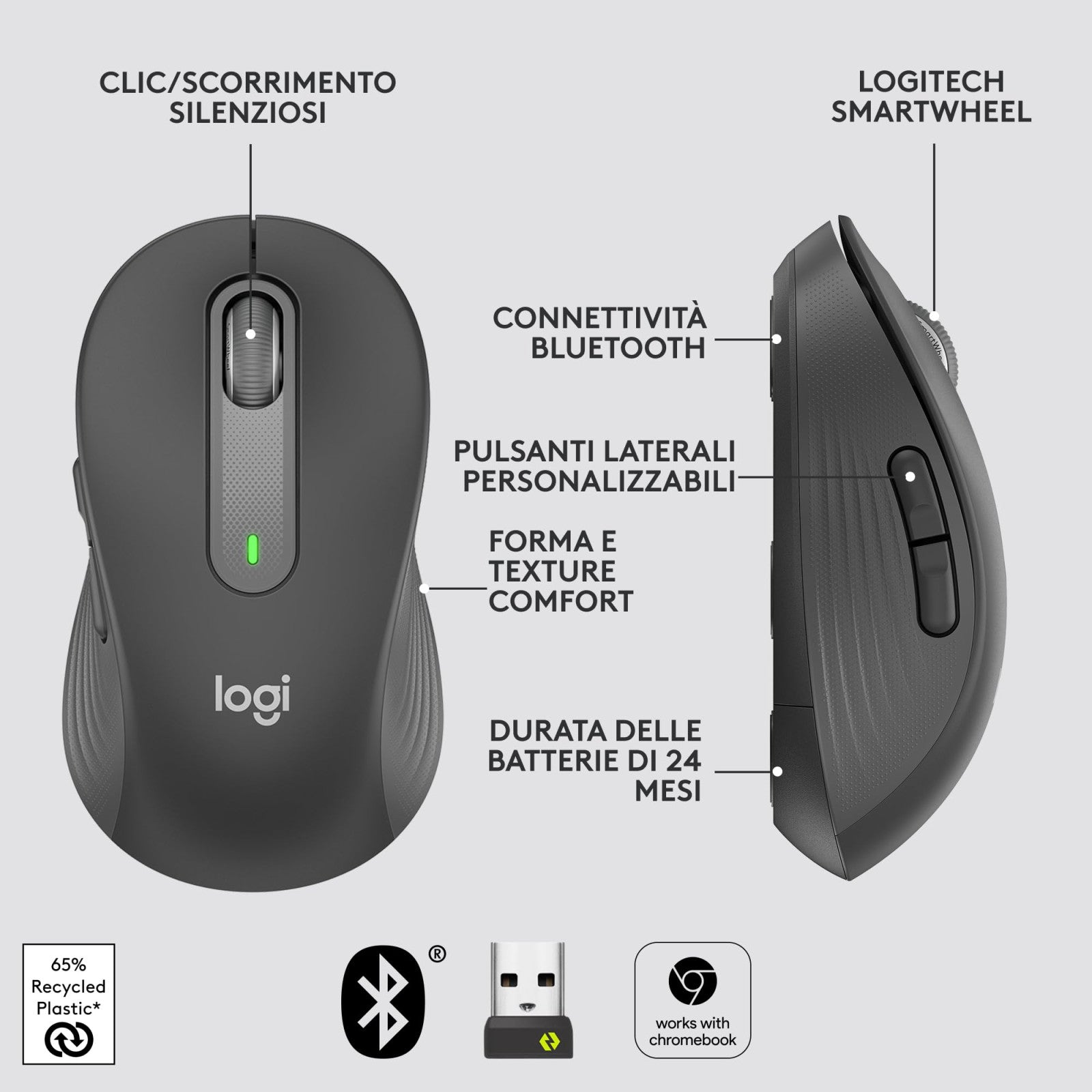 Logitech Signature M650 L Mouse Wireless per Mani Grandi Grigio Clic Silenziosi