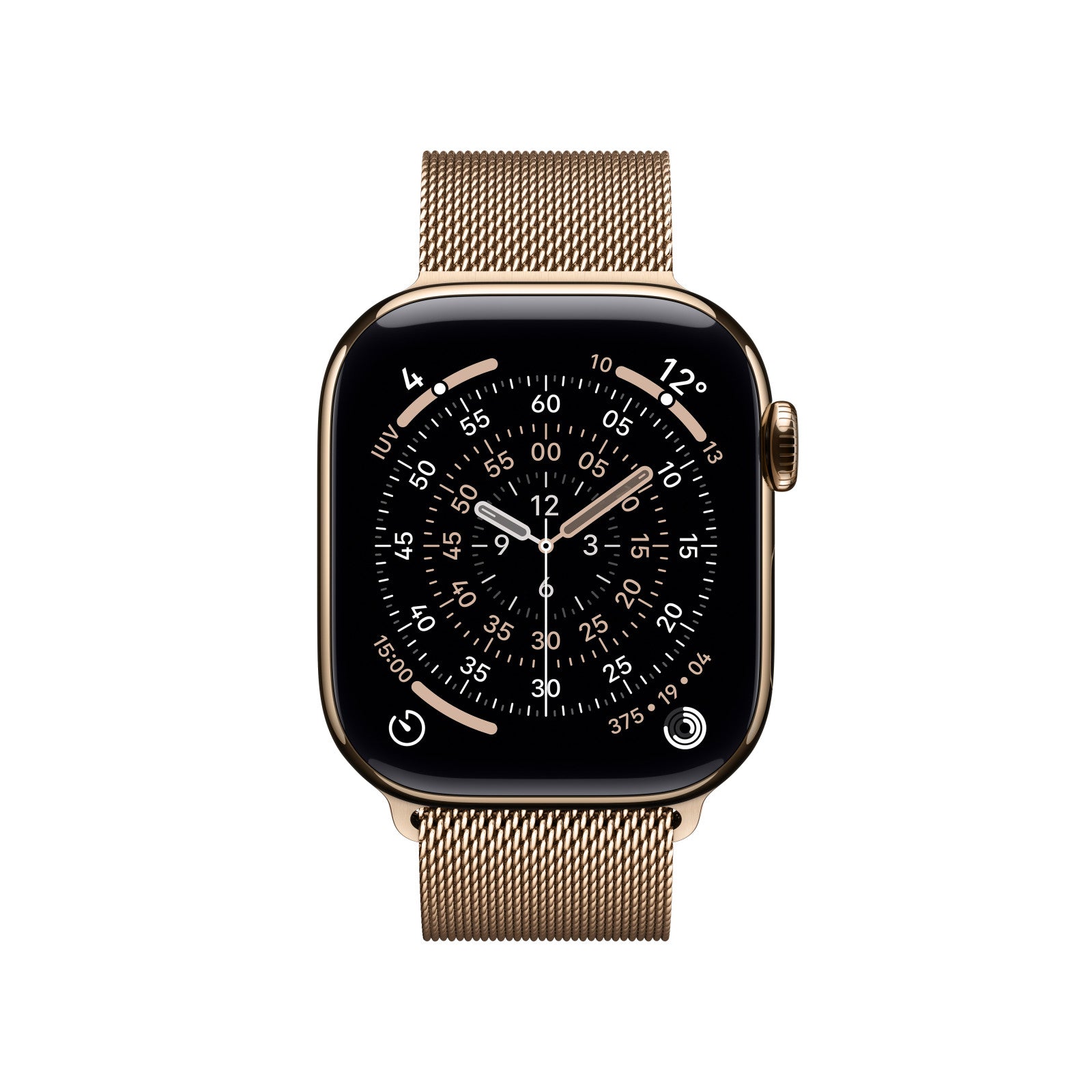 La cassa in titanio oro da 42mm, abbinata al loop in maglia milanese oro, conferisce all'Apple Watch un aspetto sofisticato e raffinato. Il design sottile e leggero lo rende comodo da indossare tutto il giorno e la notte. Il display è realizzato con vetro ultra-resistente, proteggendolo dai graffi, mentre la resistenza all'acqua fino a 50 metri e alla polvere (grado IP6X) lo rendono perfetto per ogni attività.