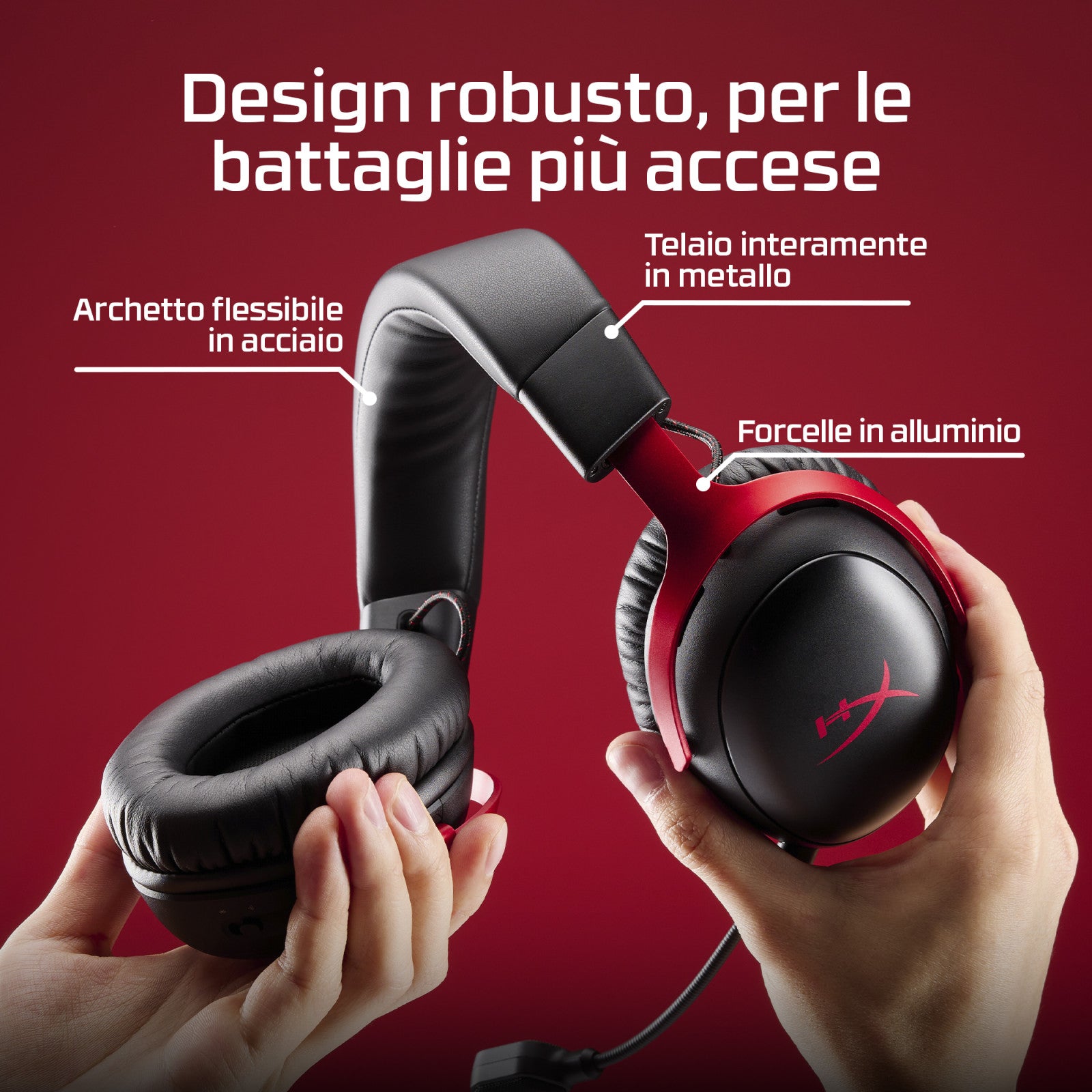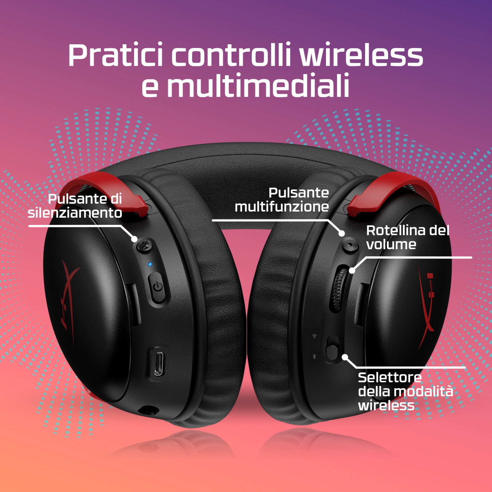 HyperX Cloud III S Wireless Cuffie Gaming Nero/Rosso Audio 3D Autonomia 200 Ore