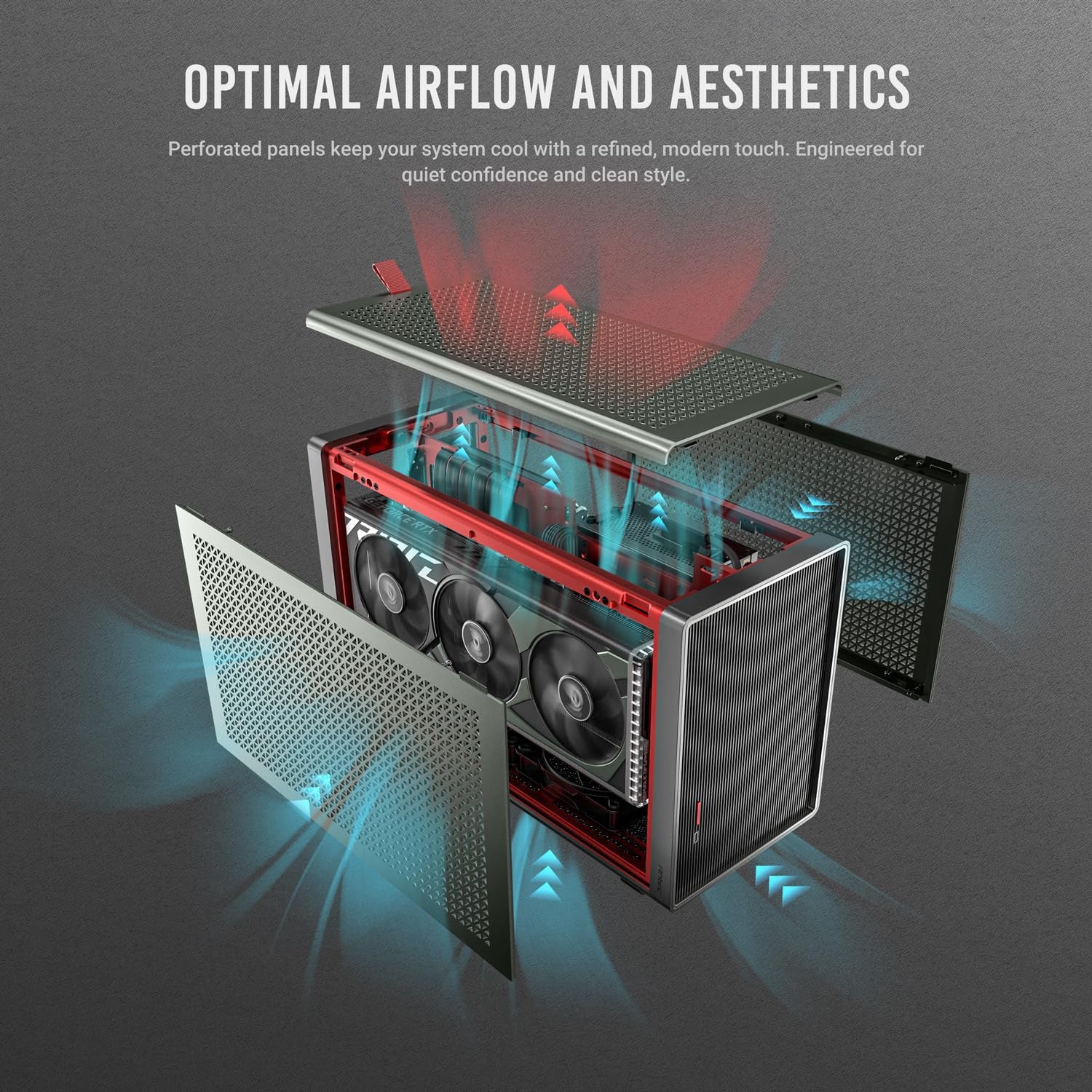 L'Antec Performance 1 M è stato progettato pensando alle esigenze dei moderni sistemi ad alte prestazioni. La sua struttura ottimizzata per un alto flusso d'aria assicura un raffreddamento efficiente, anche con componenti di fascia alta come le schede grafiche della serie RTX40.