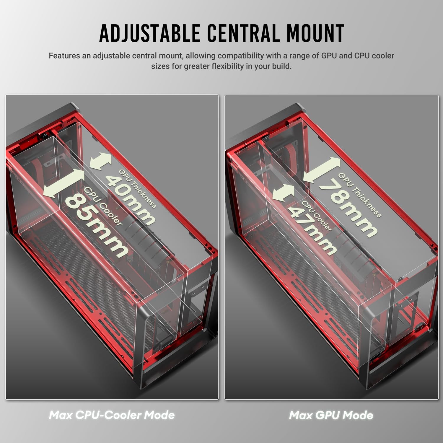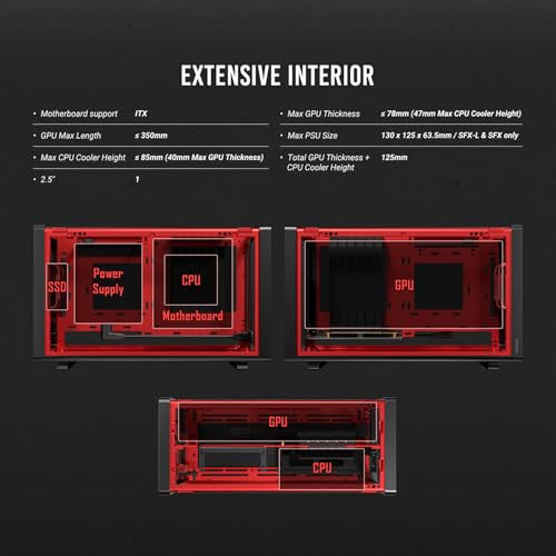 Con dimensioni di 175 mm di larghezza, 424 mm di profondità e 260 mm di altezza, questo case Mini ITX offre un equilibrio perfetto tra compattezza e capacità. Nonostante le dimensioni ridotte, supporta schede grafiche fino a 35 cm di lunghezza e dissipatori CPU fino a 12,5 cm di altezza, garantendo ampia flessibilità nella scelta dei componenti.