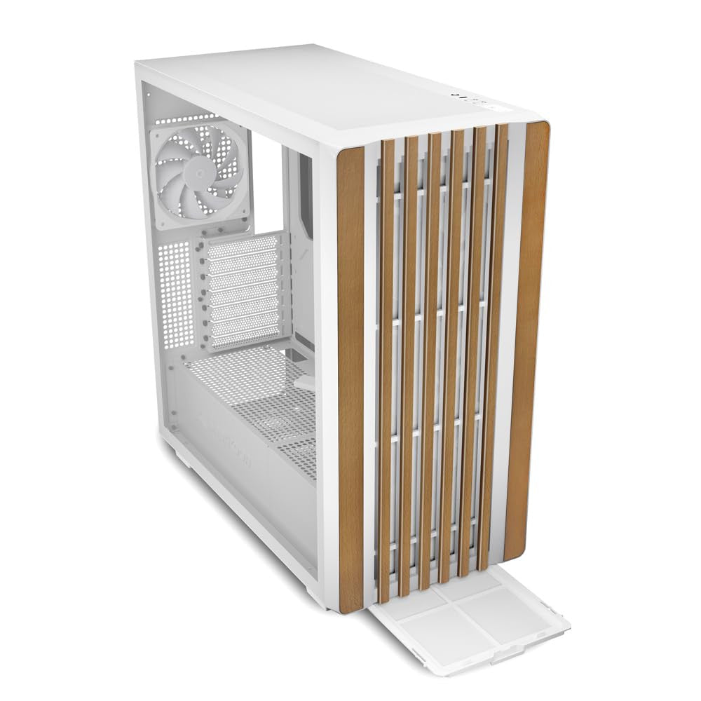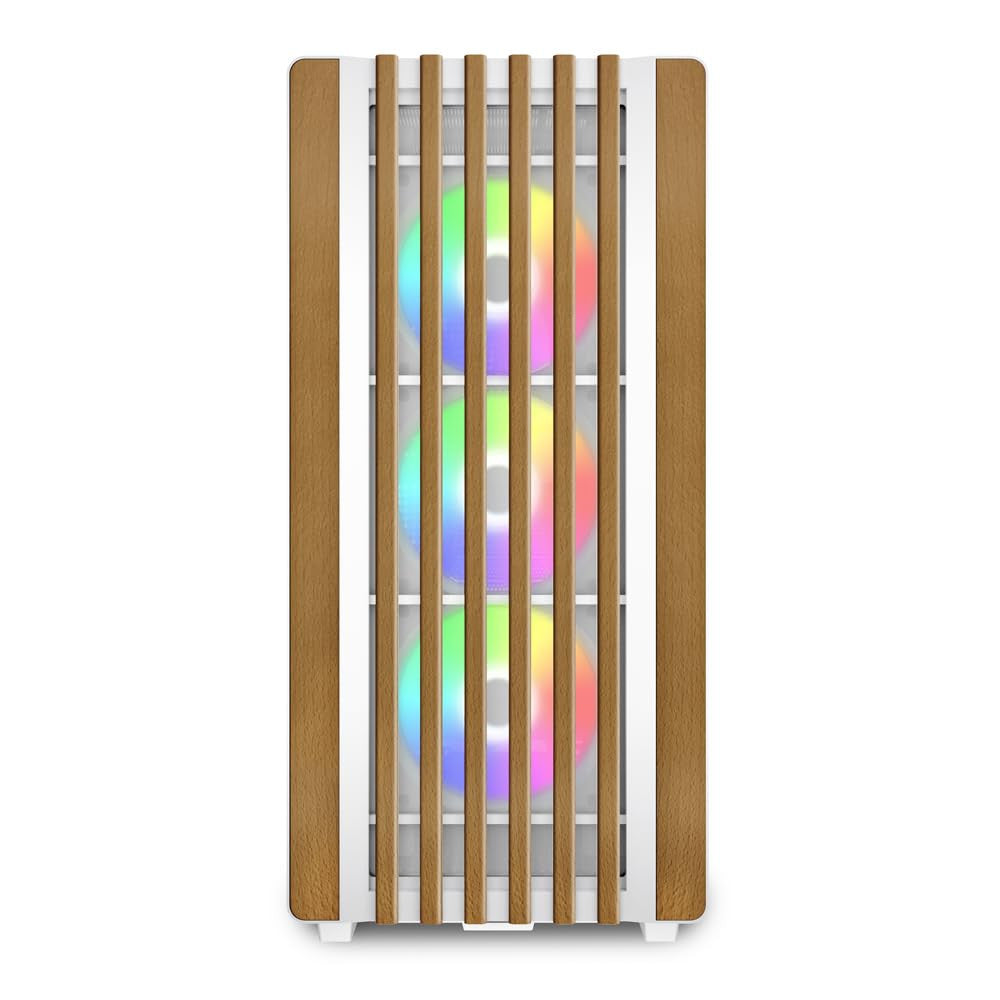 Il Rebel C70G si distingue per il suo design innovativo che combina un elegante pannello frontale in legno con un pannello laterale in vetro temperato senza viti. Questa fusione di materiali nobili crea un'estetica sofisticata che si adatta perfettamente a qualsiasi ambiente, dal gaming room al soggiorno moderno.