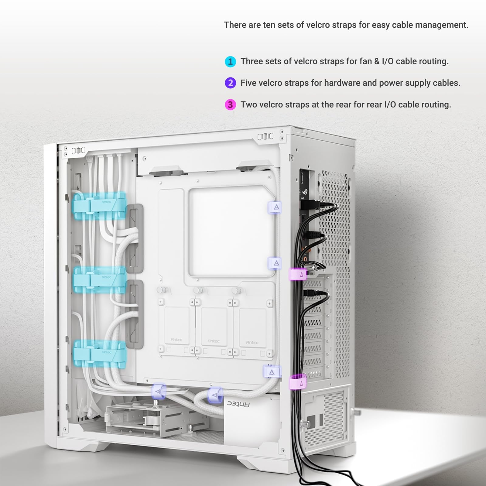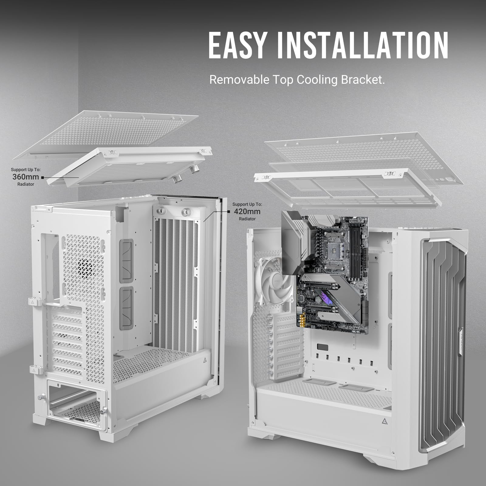 Realizzato con materiali premium come vetro, plastica e acciaio, questo case Full Tower bianco non solo offre prestazioni eccezionali ma si integra perfettamente in qualsiasi setup. La sua struttura spaziosa supporta schede madri ATX, EATX, ITX e micro ATX, offrendo flessibilità per build di ogni tipo.