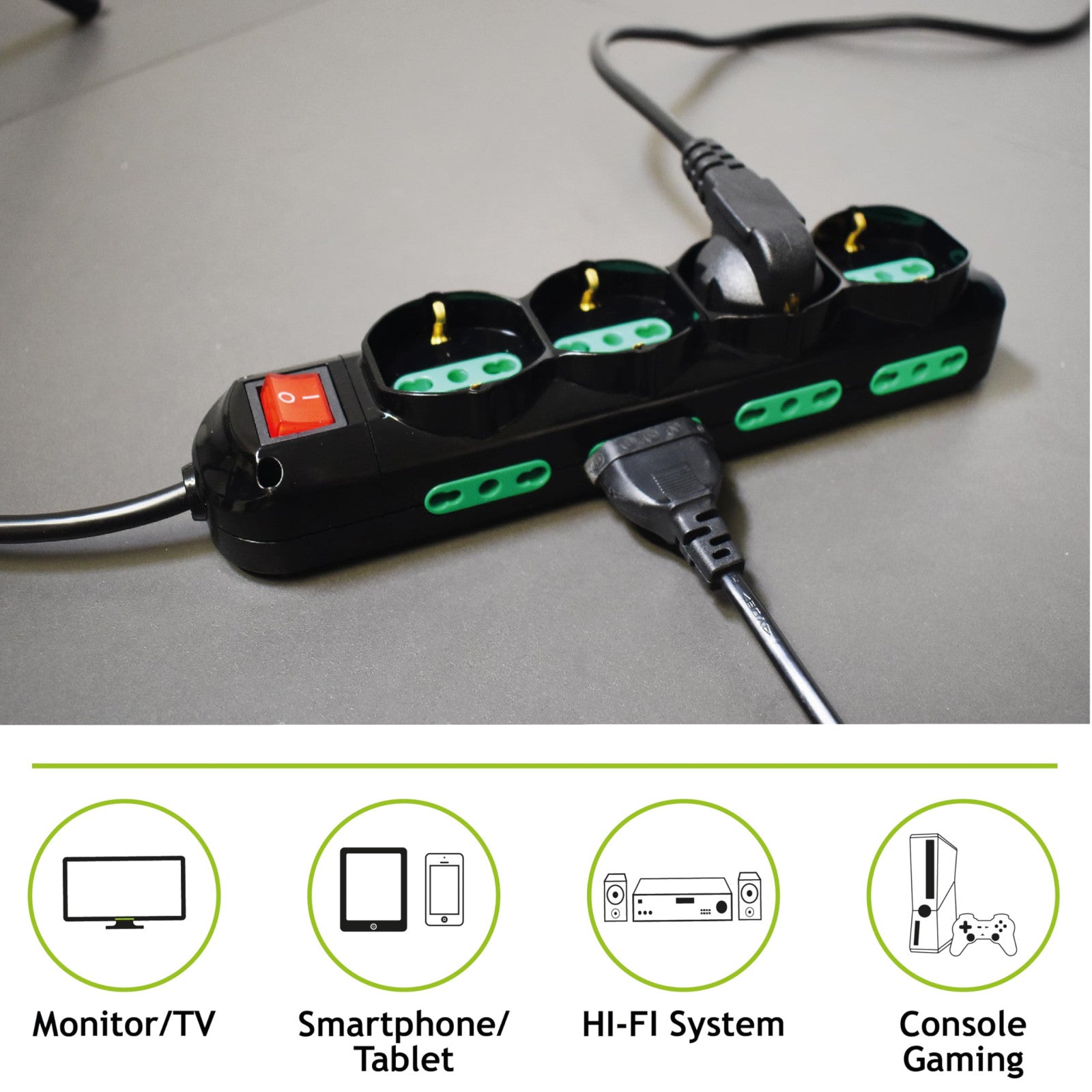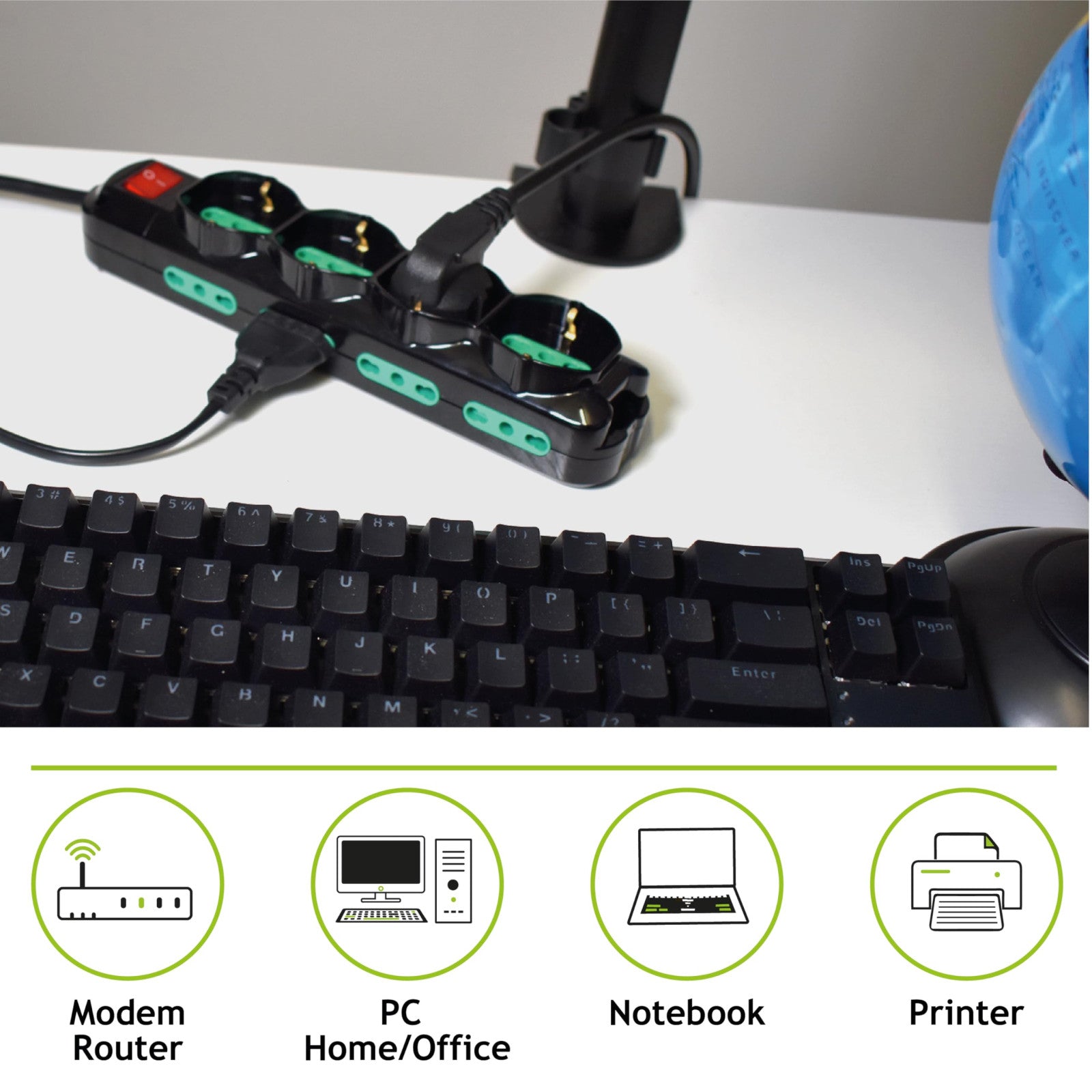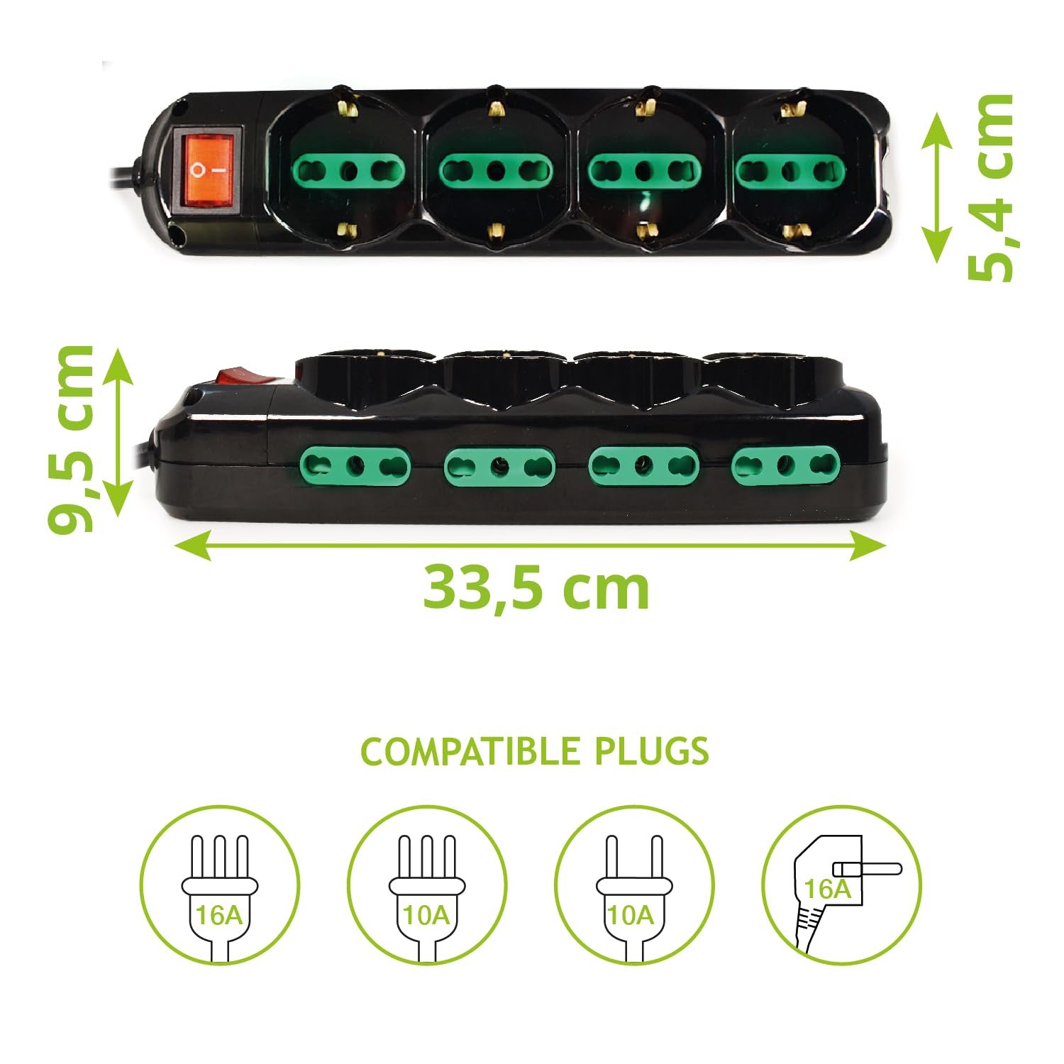 La sicurezza è al primo posto con la protezione per bambini integrata, che rende questa multipresa adatta a qualsiasi ambiente, sia domestico che professionale. L'interruttore luminoso facilita l'accensione e lo spegnimento, garantendo un uso quotidiano semplice e sicuro.