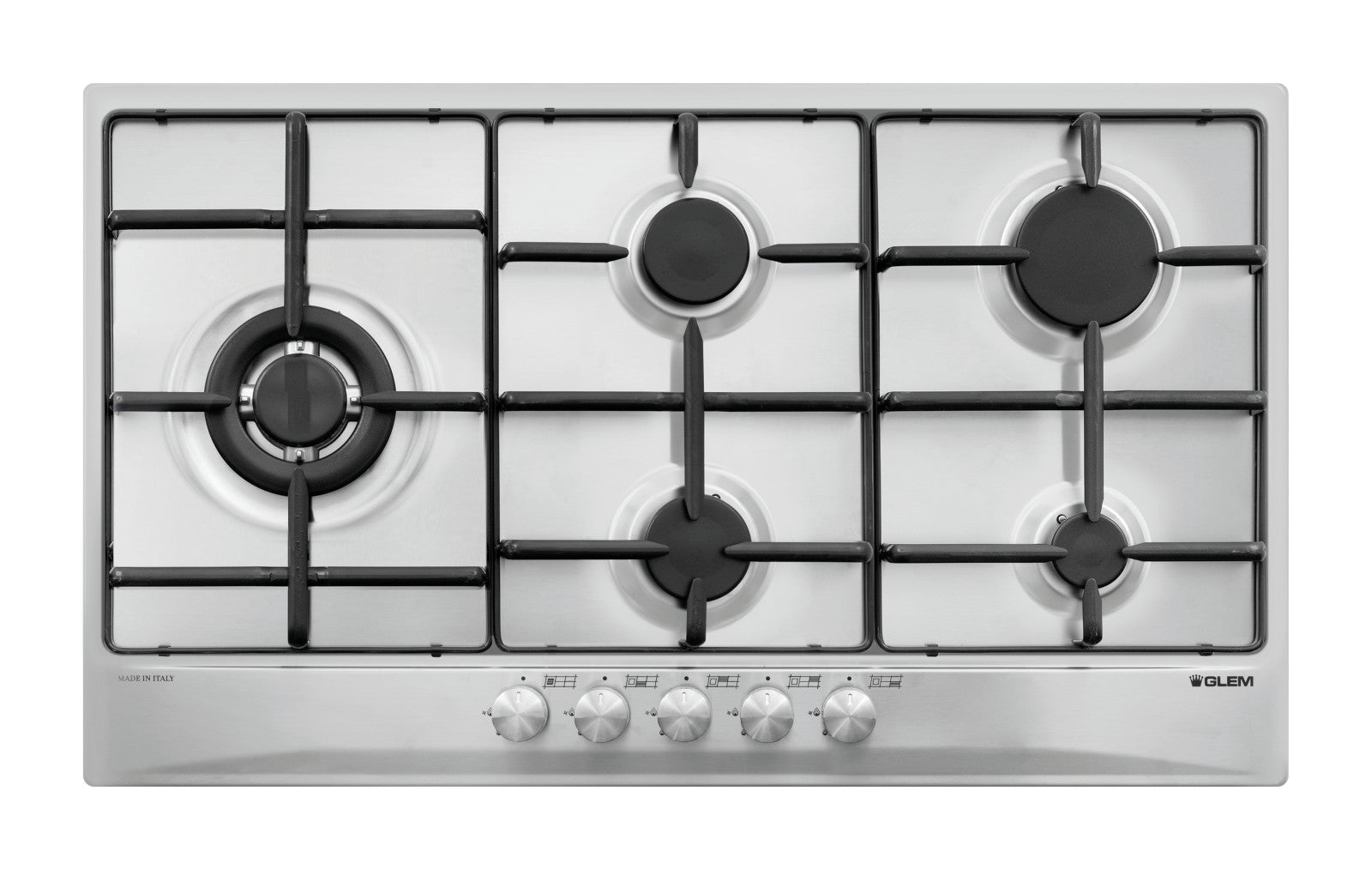 Glem Gas GT95TIX Piano cottura a gas 5 fuochi 86cm da incasso acciaio inox con wok