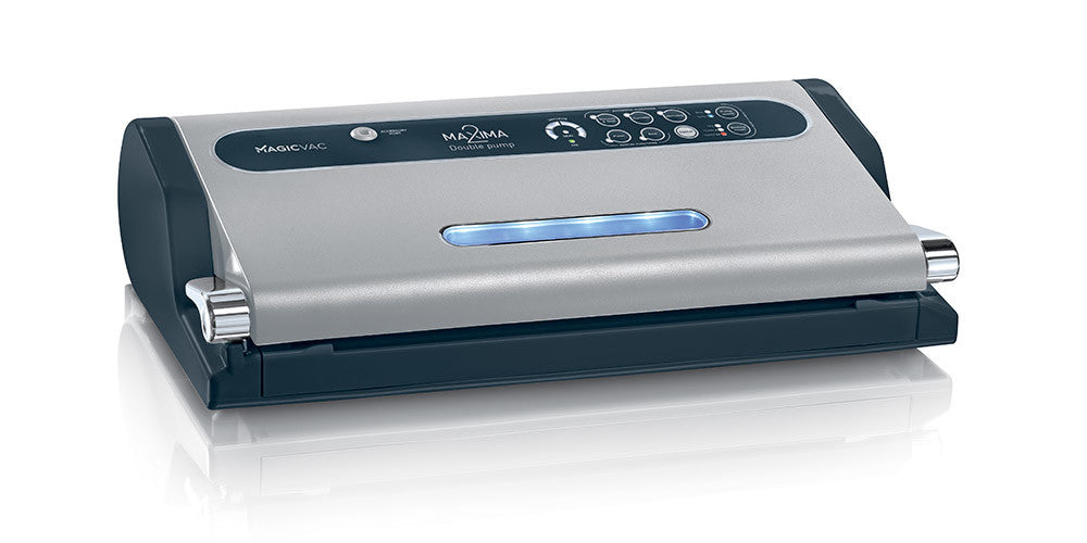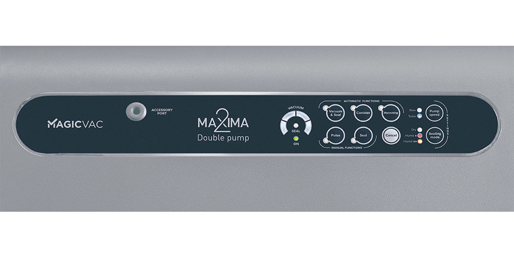Magic Vac Maxima 2 is a powerful professional vacuum machine with a 2-pump system and 820 mbar vacuum. Elegant design, LED porthole and washable tray for optimal food preservation.