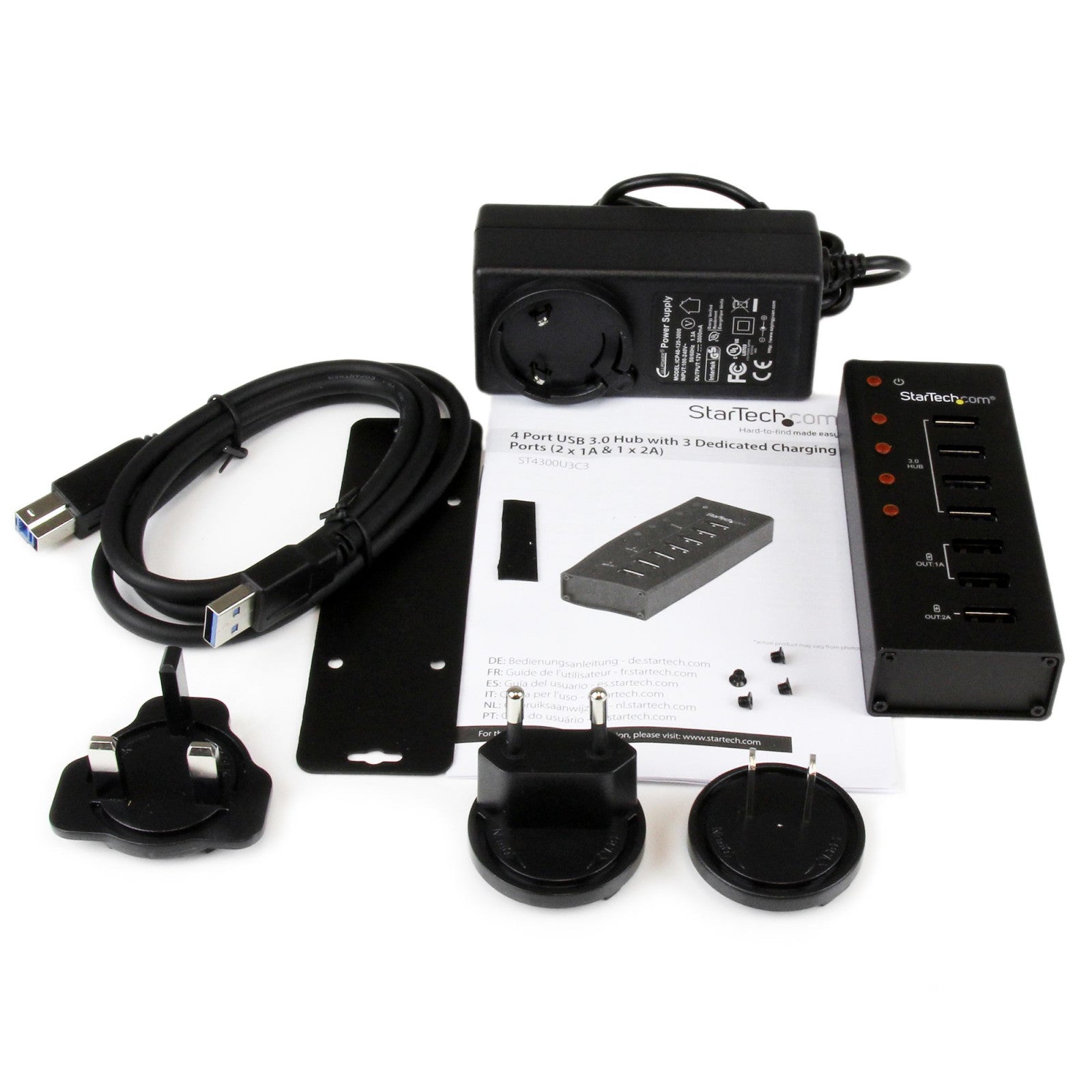 StarTech.com Hub USB 3.0 ST4300U3C3 - 4 Porte + 3 Ricarica - Nero - Alluminio