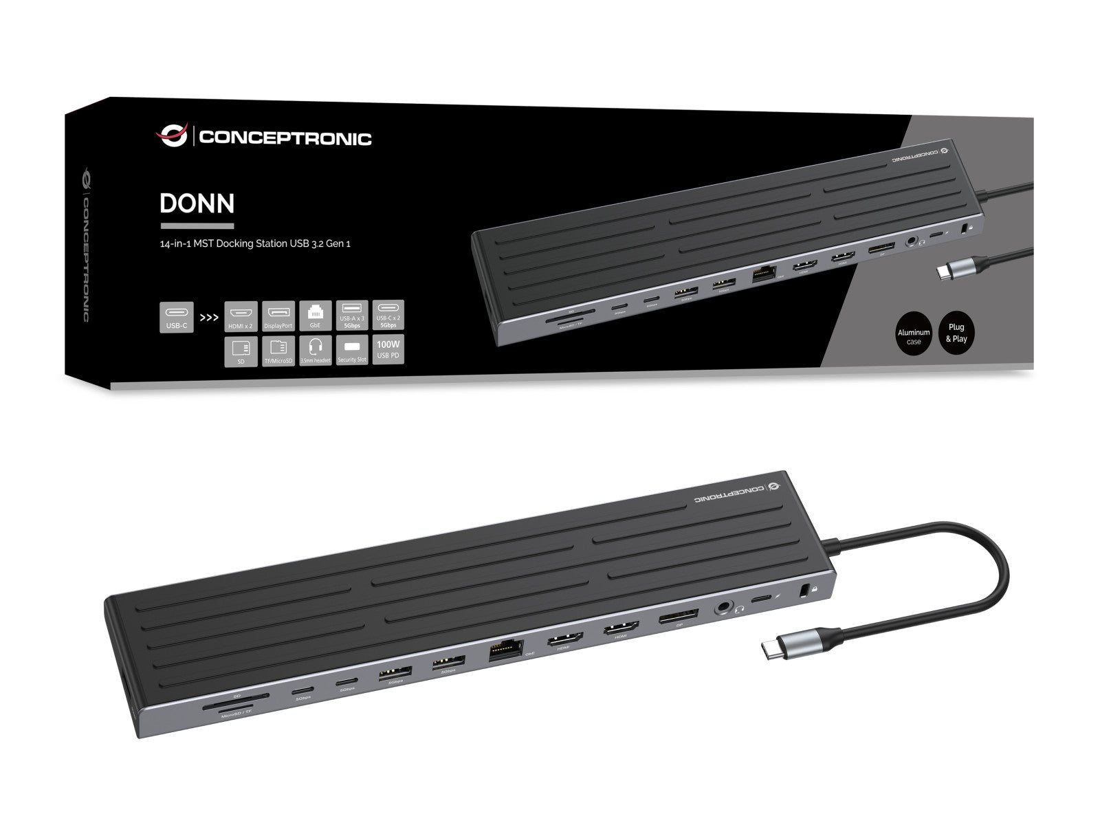 Conceptronic DONN32B Docking Station USB-C 3.2 Gen 1 4K con MST 14-in-1