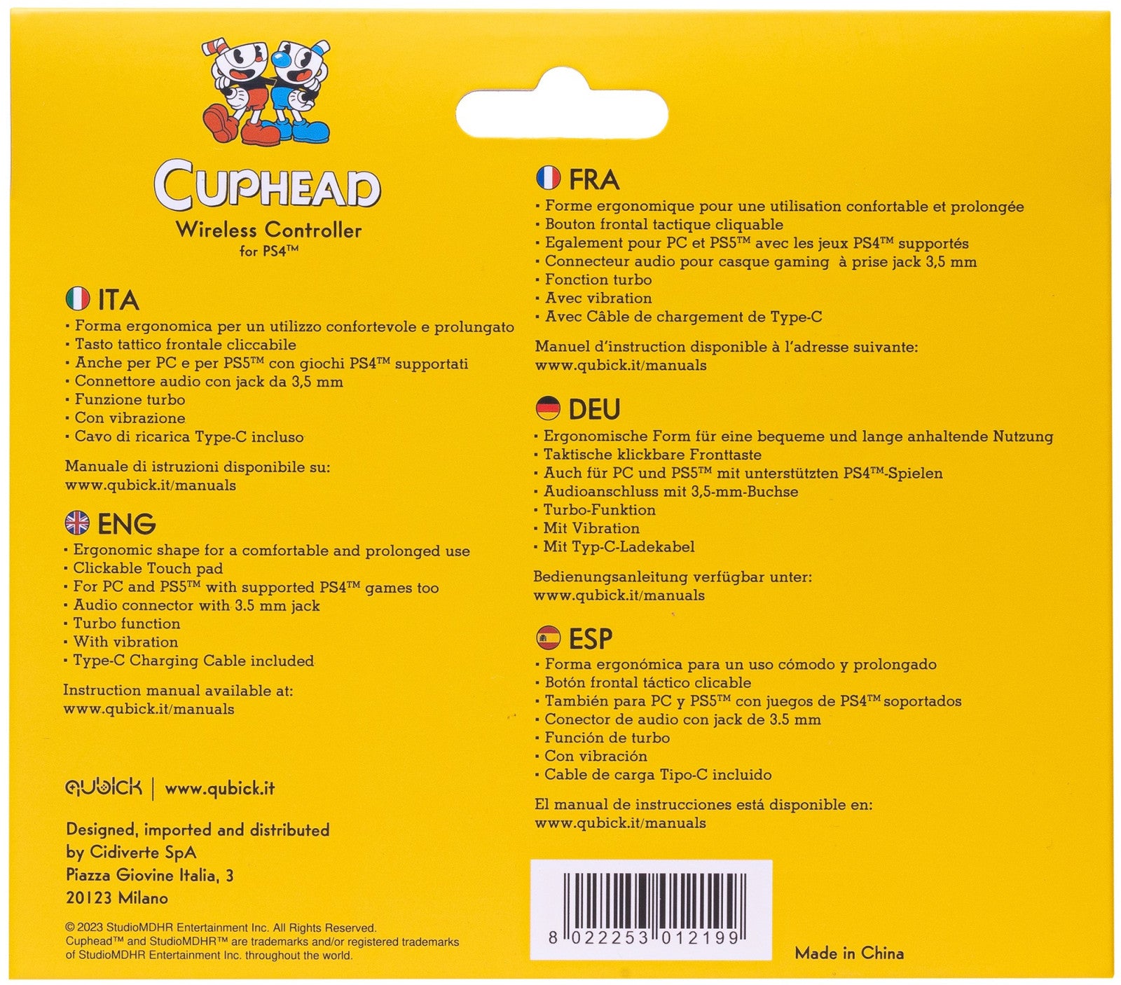 Il controller wireless Qubick non è solo funzionale, ma anche esteticamente accattivante. Il suo colore giallo vivace lo rende un accessorio di stile che si distingue nella tua postazione di gioco. La batteria rimovibile assicura una lunga durata e la possibilità di sostituirla facilmente.