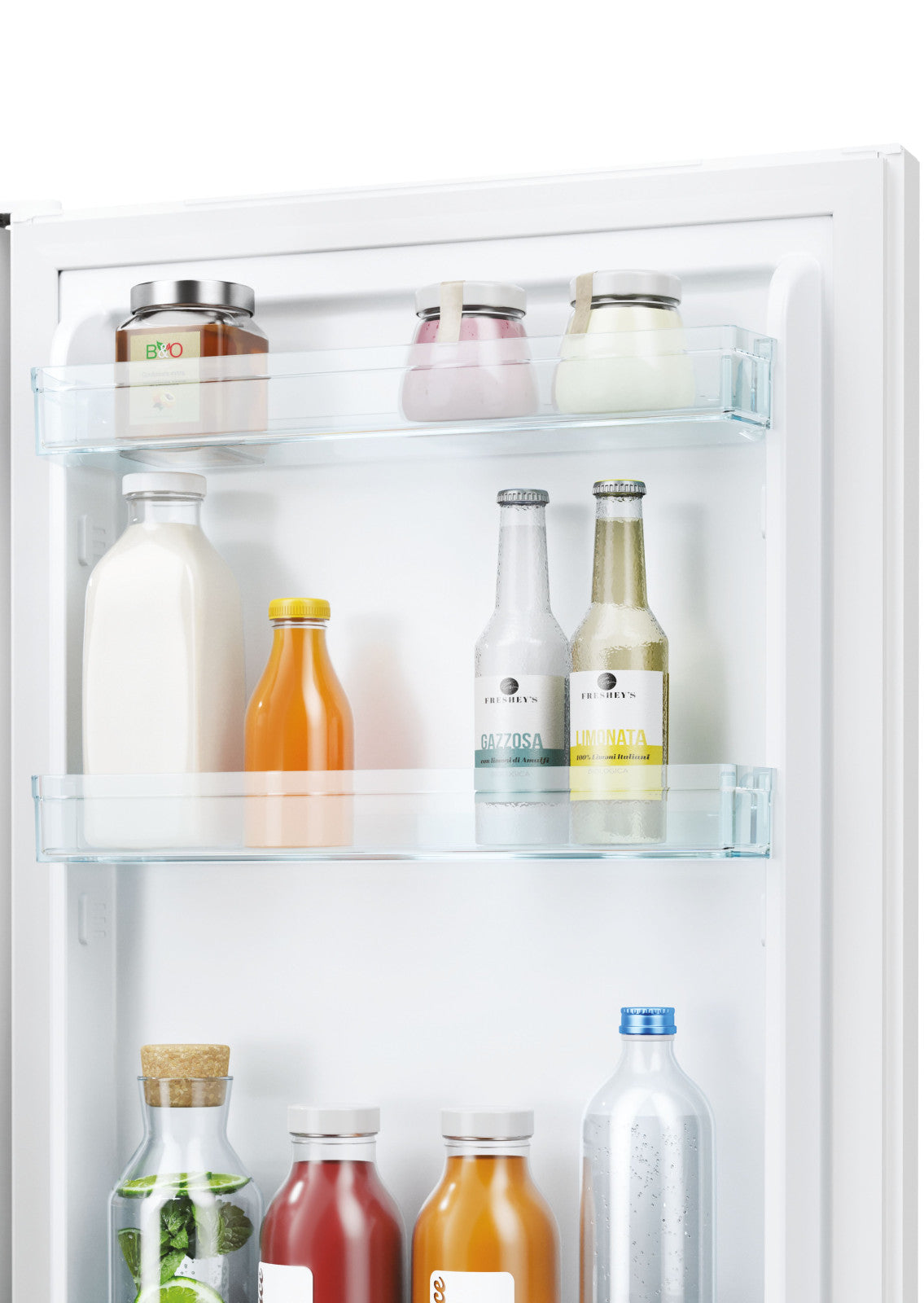 - 4 ripiani in vetro: resistenti e facili da pulire, per una migliore visibilità degli alimenti.
