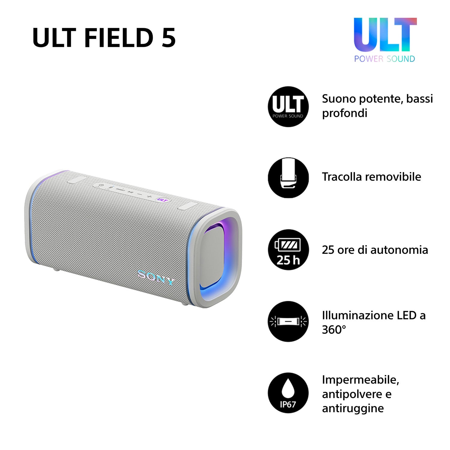 Non lasciatevi sfuggire l'opportunità di elevare la vostra esperienza musicale all'aperto. Esplorate le potenzialità del Sony Ult Field 5 e preparatevi a vivere la vostra colonna sonora preferita come mai prima d'ora, ovunque vi troviate.