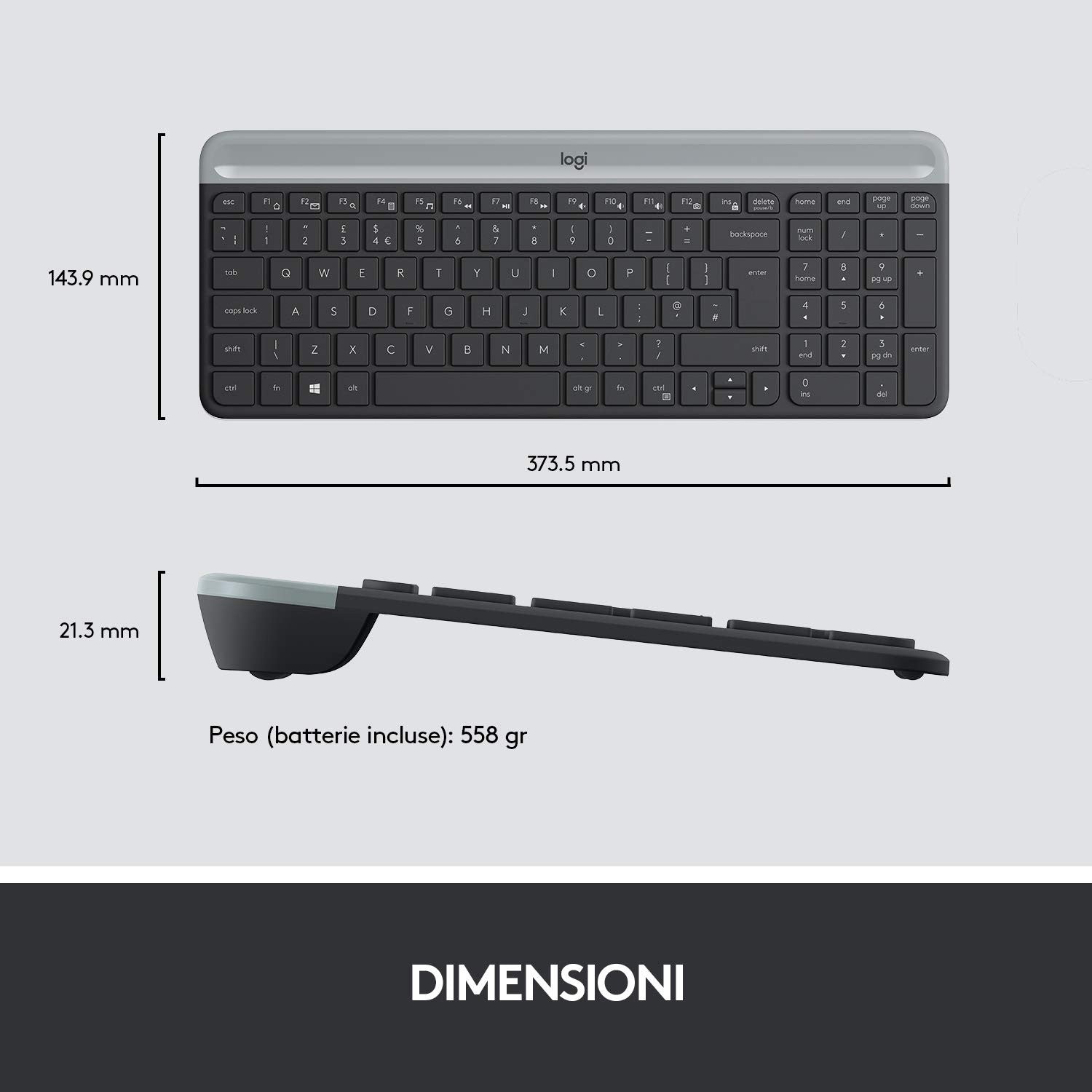 Logitech MK470 Kit Mouse e Tastiera Wireless Sottile Silenzioso Italiano QWERTY