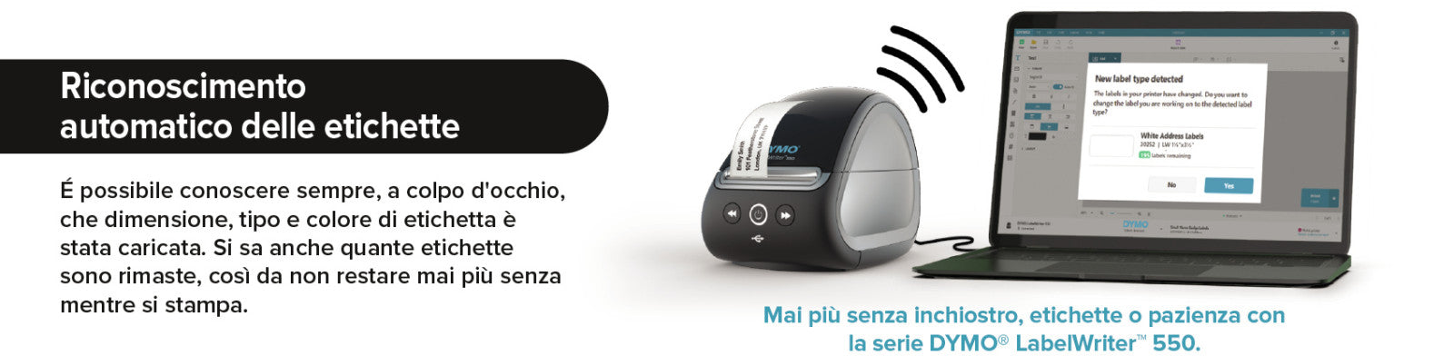 Grazie alla connessione LAN, la DYMO LabelWriter 550 Turbo si integra perfettamente nel tuo ambiente di lavoro. Più utenti possono accedere alla stampante da qualsiasi computer in rete, eliminando la necessità di cavi ingombranti e configurazioni complesse.