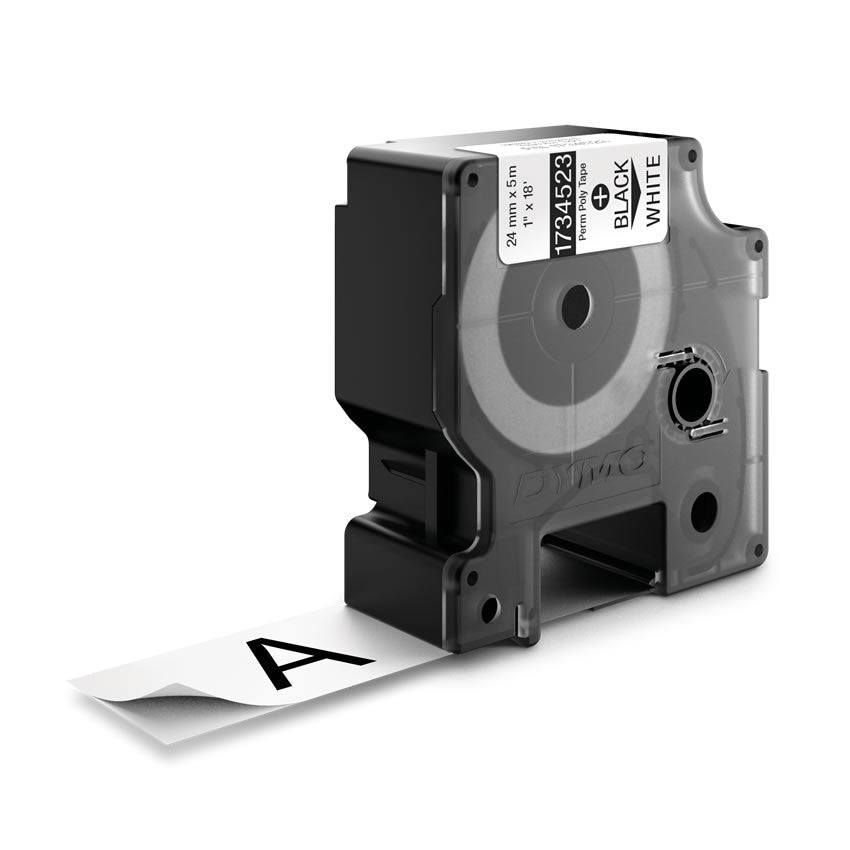 DYMO Nastro Etichette Industriali Poliestere Permanente Nero su Bianco 24mm x 5.5m