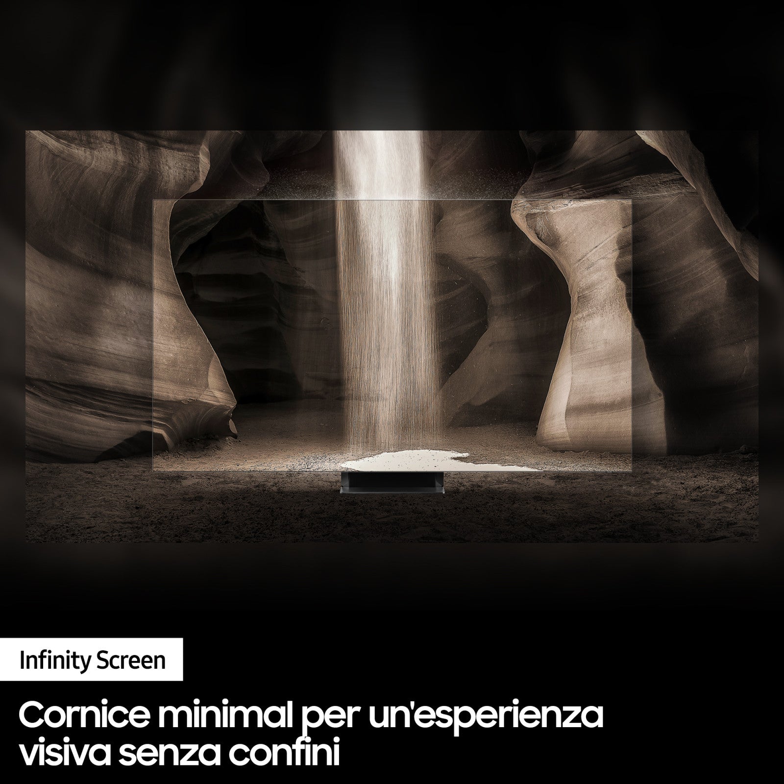 Il design Infinity One di questo TV Samsung offre un'esperienza visiva immersiva, con bordi quasi invisibili che permettono di concentrarsi completamente sull'azione sullo schermo. La tecnologia Object Tracking Sound Pro crea un audio tridimensionale che segue l'azione, mentre la modalità Gaming ottimizza le prestazioni per i videogiocatori più esigenti.