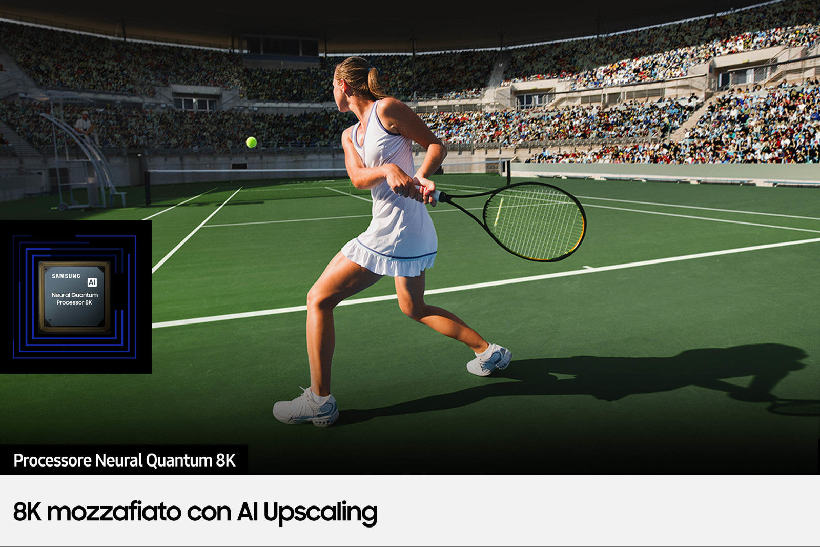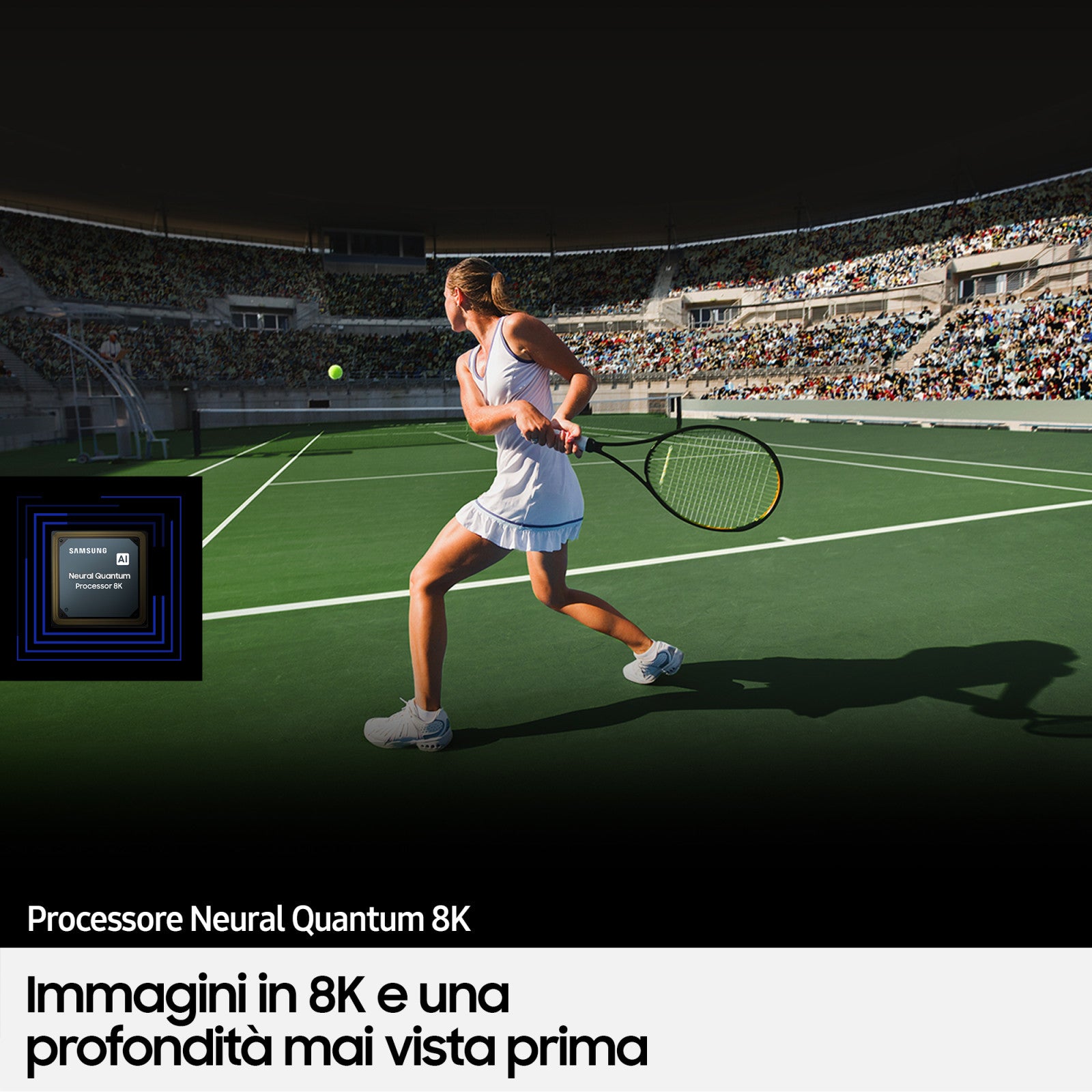 La tecnologia Neo QLED di Samsung porta la qualità dell'immagine a nuovi livelli, offrendo neri profondi, colori vivaci e un contrasto eccezionale. Il processore Neural Quantum 8K utilizza l'intelligenza artificiale per ottimizzare ogni fotogramma, garantendo una qualità visiva senza precedenti anche con contenuti non nativi 8K.