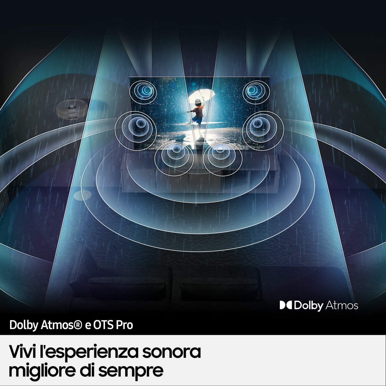 Per gli appassionati di home theater, questo TV Neo QLED supporta tecnologie audio avanzate come Q-Symphony e la modalità Adaptive Sound+, che si adatta automaticamente all'ambiente per un'esperienza sonora ottimale.