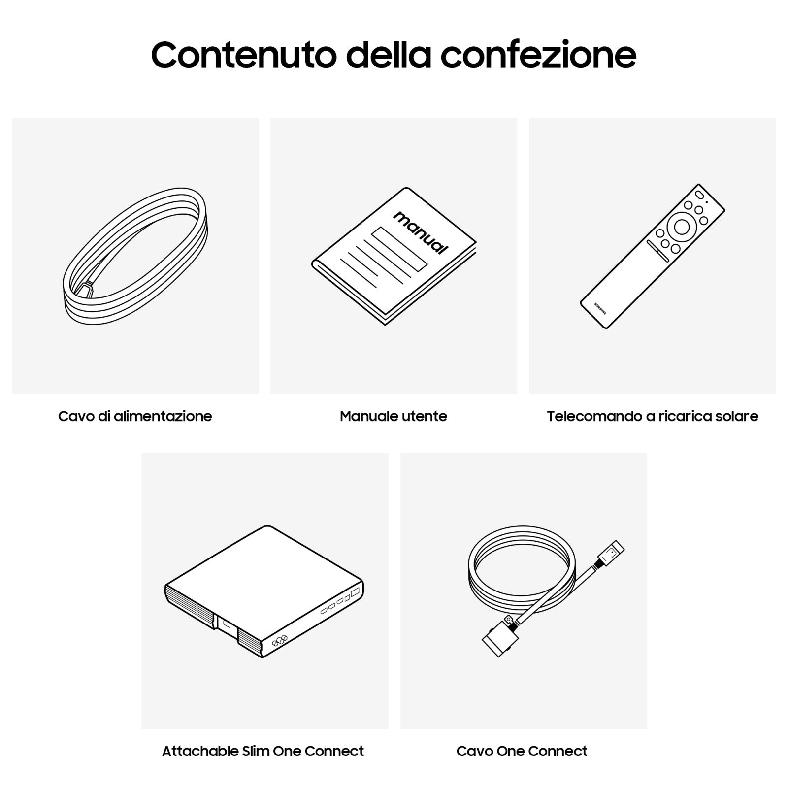 Grazie al Smart Hub di Samsung, avrai accesso a un mondo di contenuti e app, tra cui servizi di streaming popolari e la possibilità di giocare in cloud senza bisogno di una console. La connettività Wi-Fi 6 e Bluetooth 5.2 assicura streaming fluido e connessioni stabili con i tuoi dispositivi.