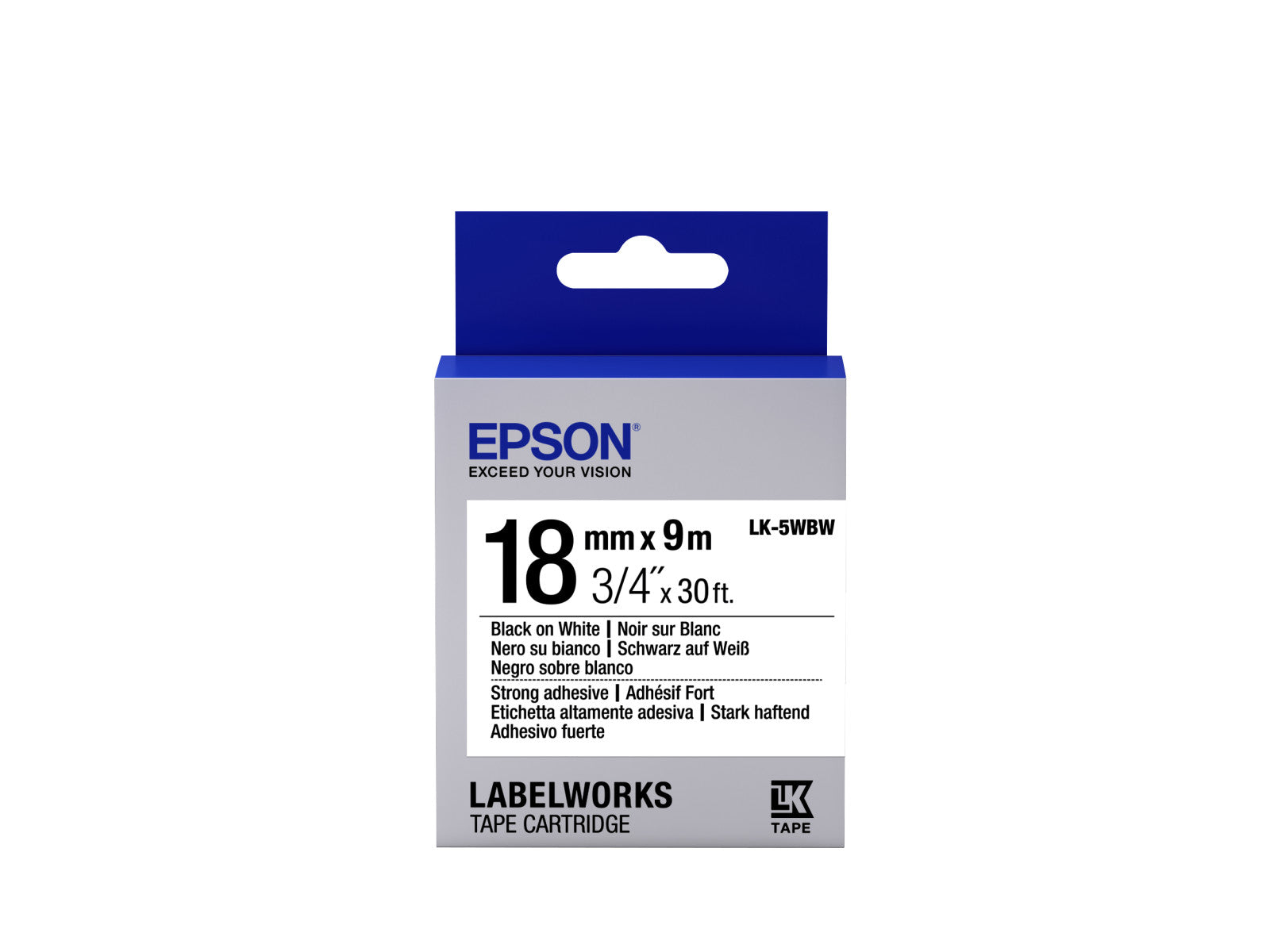 Epson LK-5WBW Nastro per Etichettatrice 18mm x 9m Nero su Bianco Ad Alta Adesione